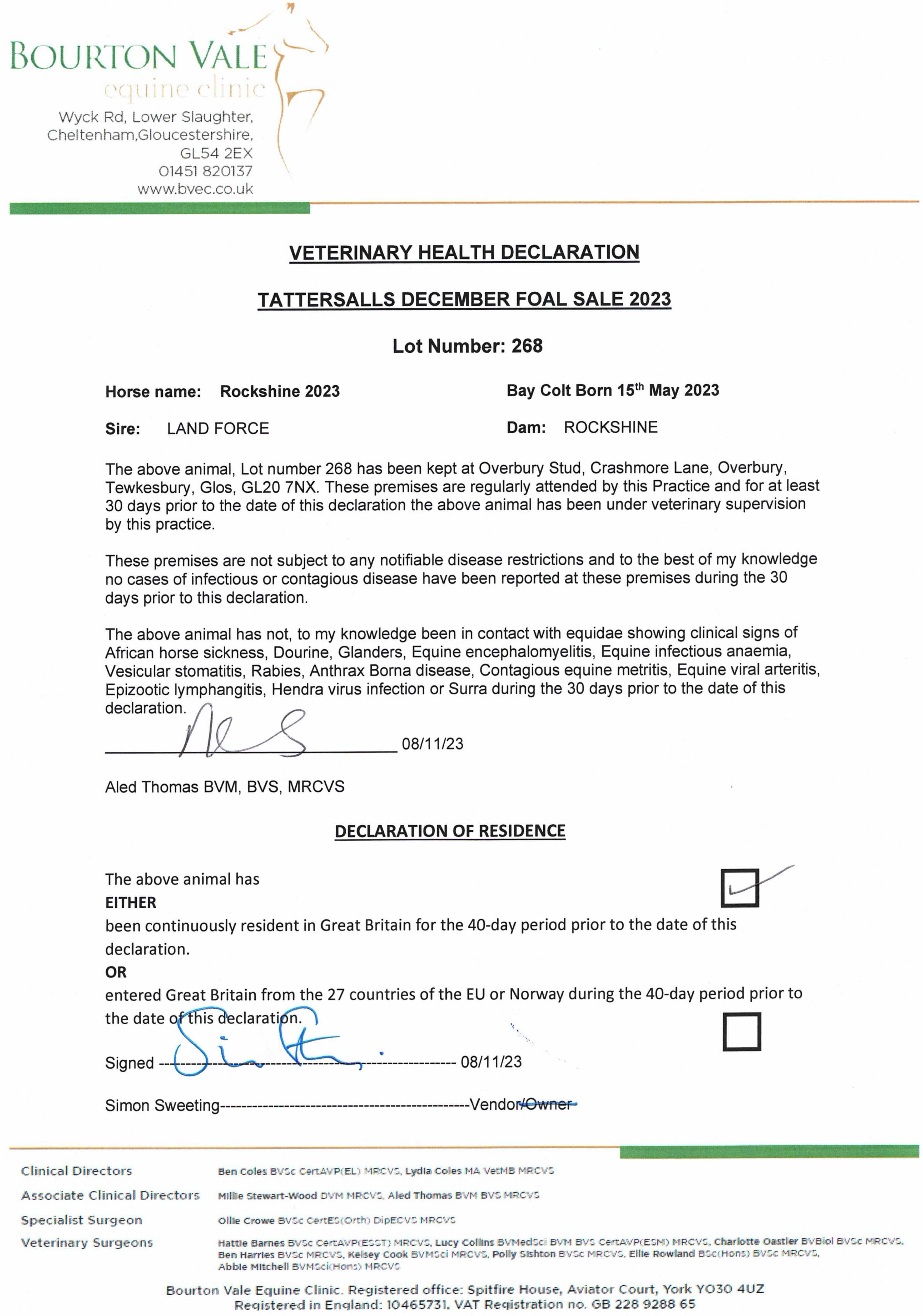 October Yearling Sale, Book 3 2023 lot 1729 F. by Churchill (IRE) 2022, Overbury Stud=>Vendor 3,000 gns