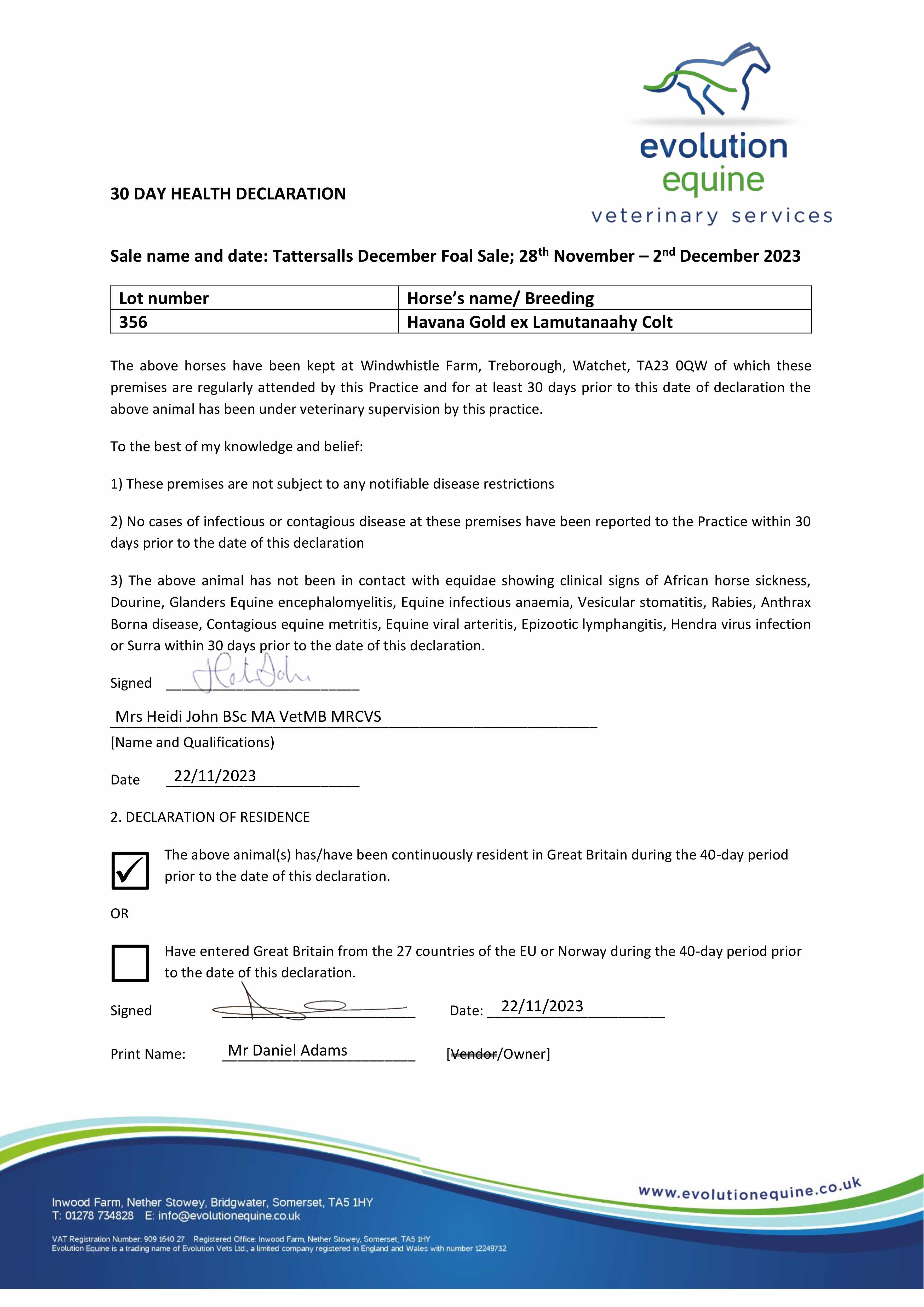 Somerville Yearling Sale 2024 lot 231, Hegarty Bloodstock=>Jamie Piggott / Nigel Tinkler 30,000 gns