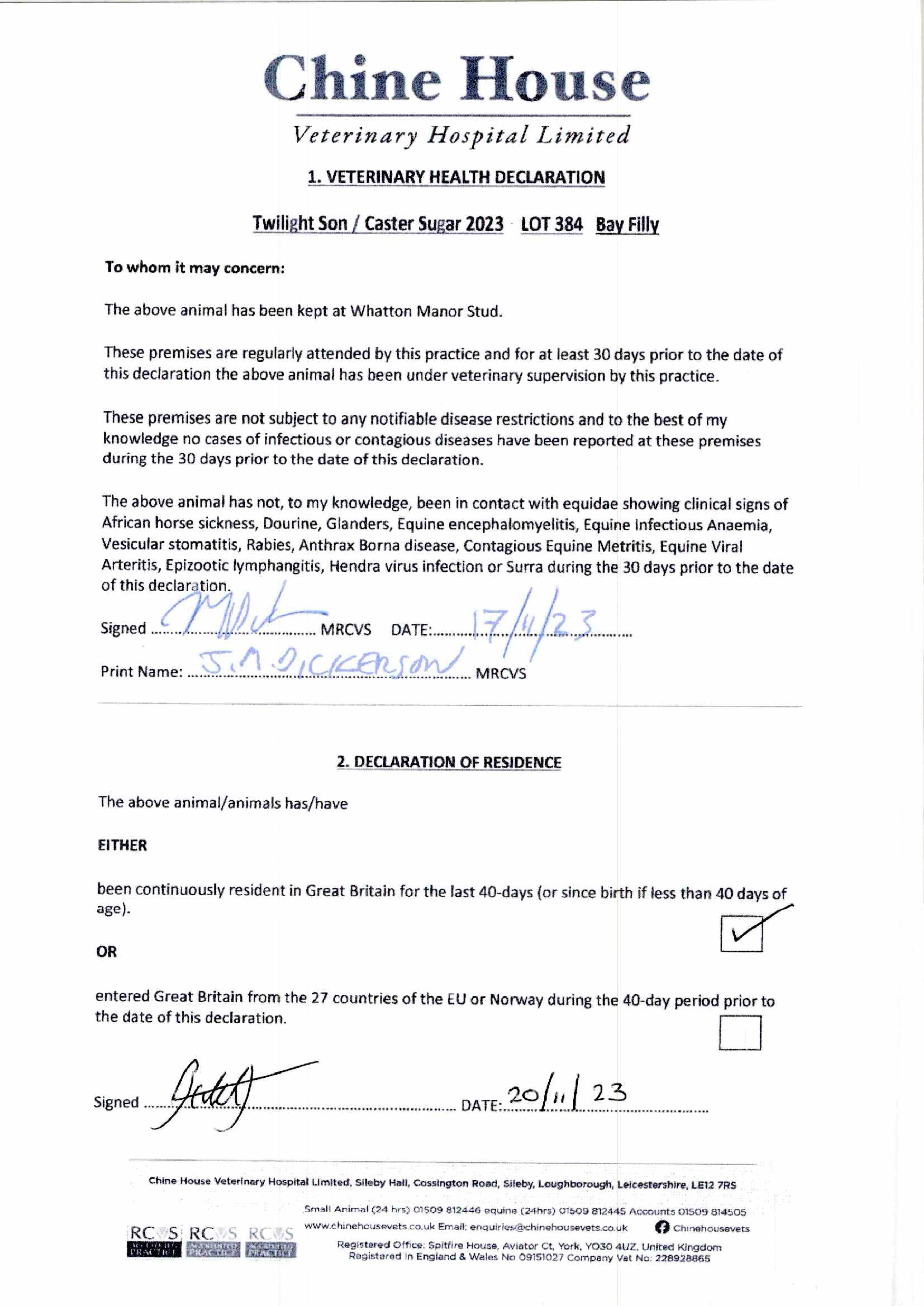 Consignor: Whatton Manor Stud