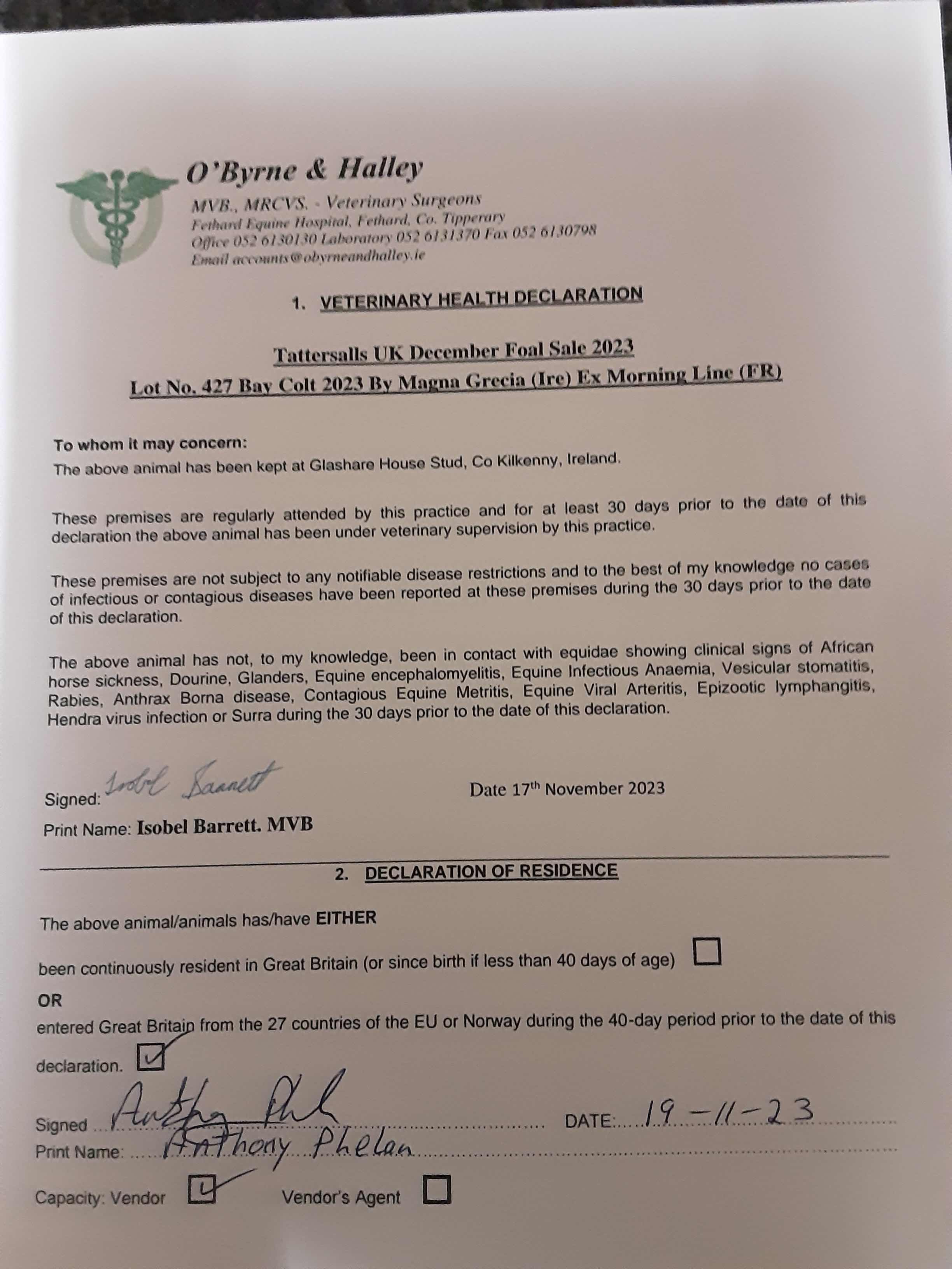 December Mare Sale 2023 lot 1560 Vernet (IRE) (F. by Caravaggio (USA)), The Castlebridge Consignment=>Vaughan Racing 60,000 gns