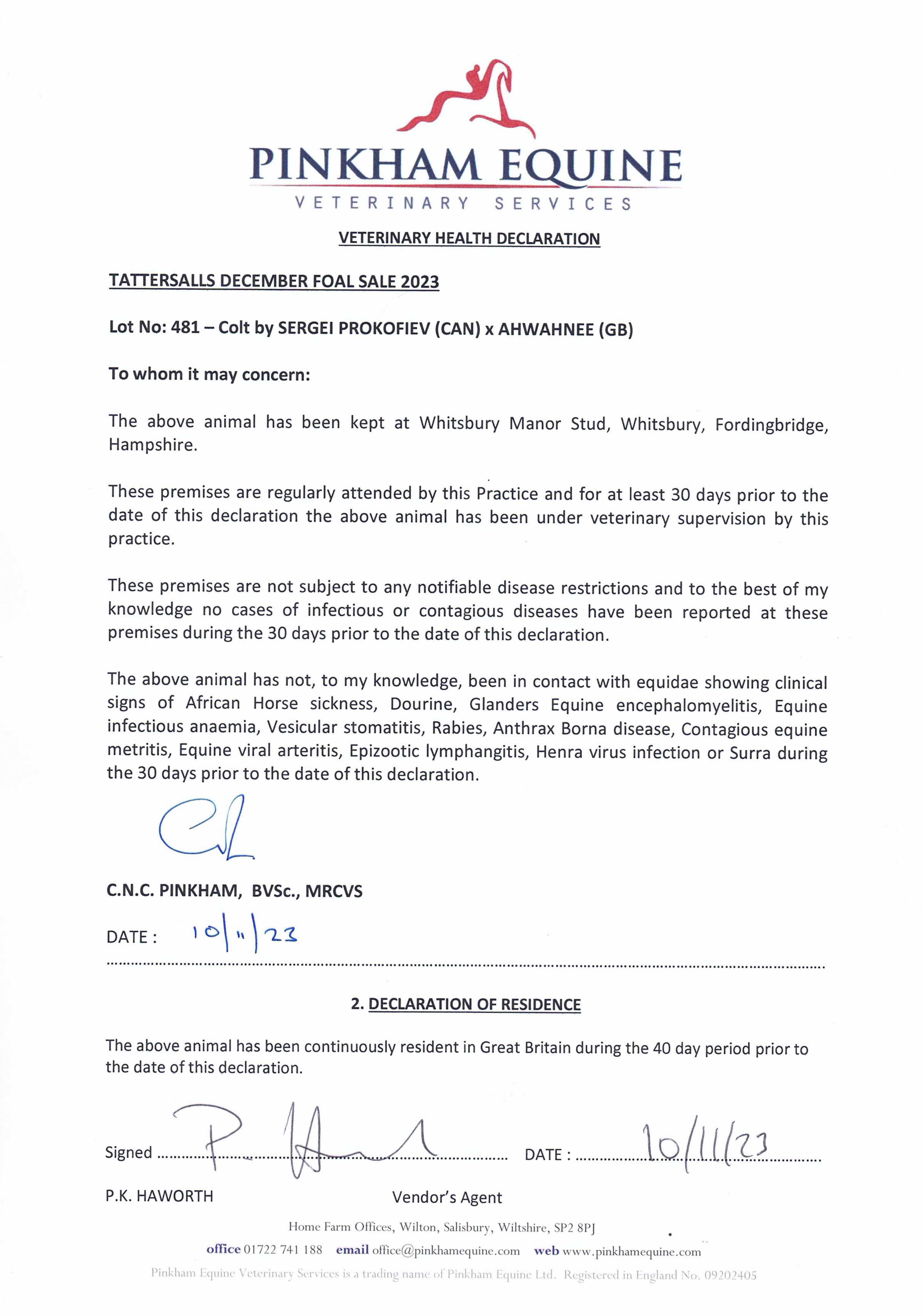 Consignor: Whitsbury Manor Stud