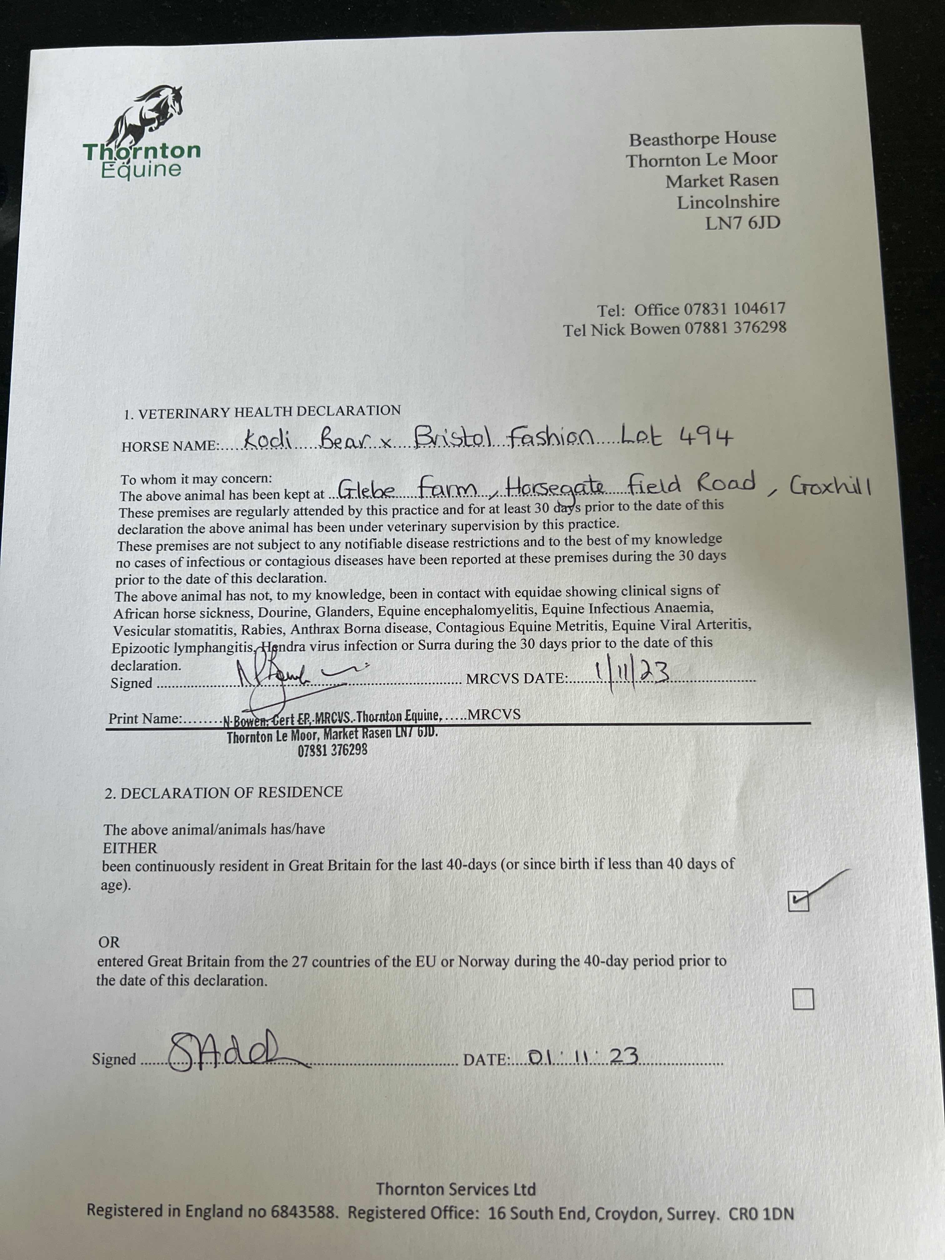 Consignor: Glebe Farm Stables