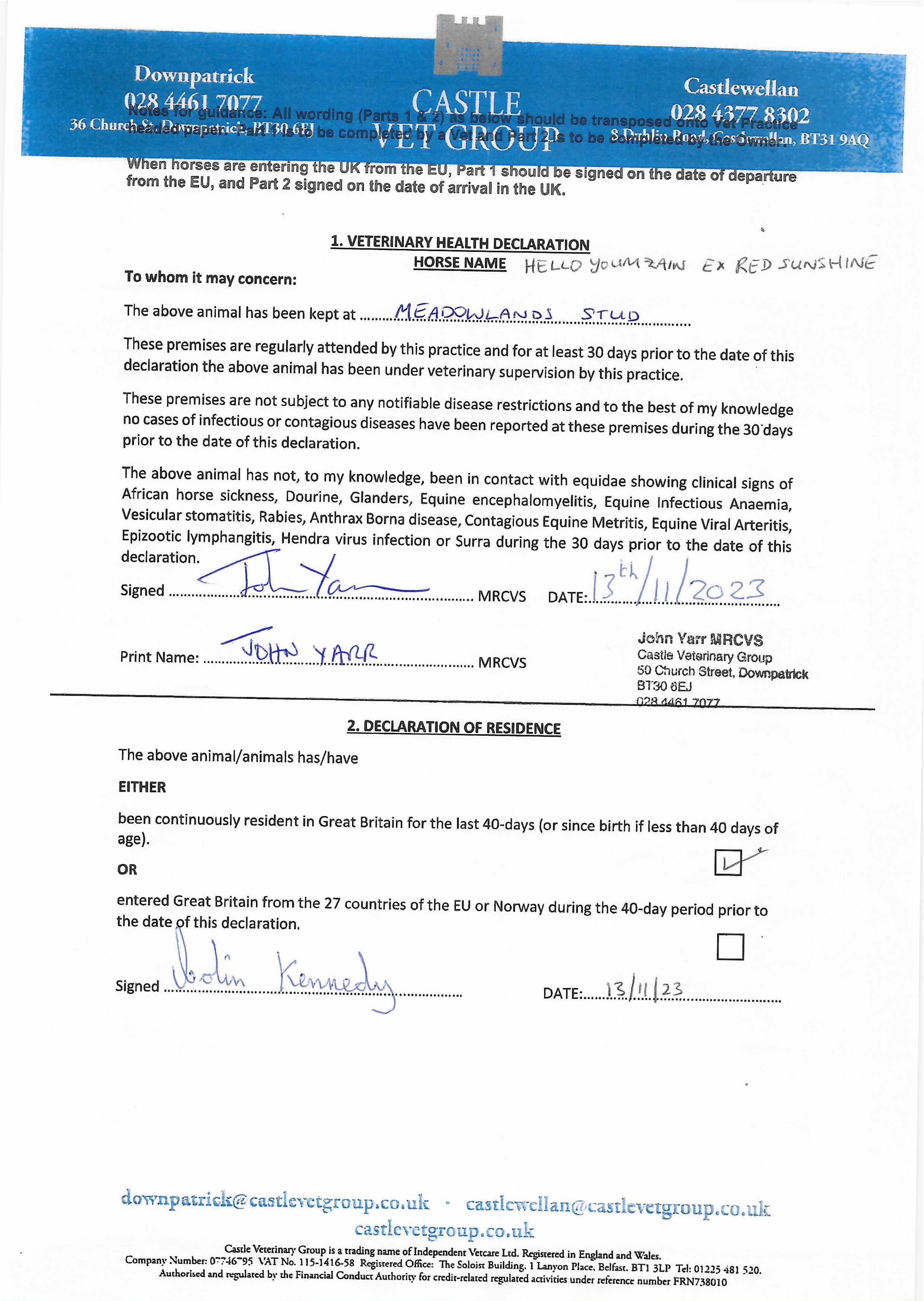 Consignor: Meadowlands Stud (Co.Down)