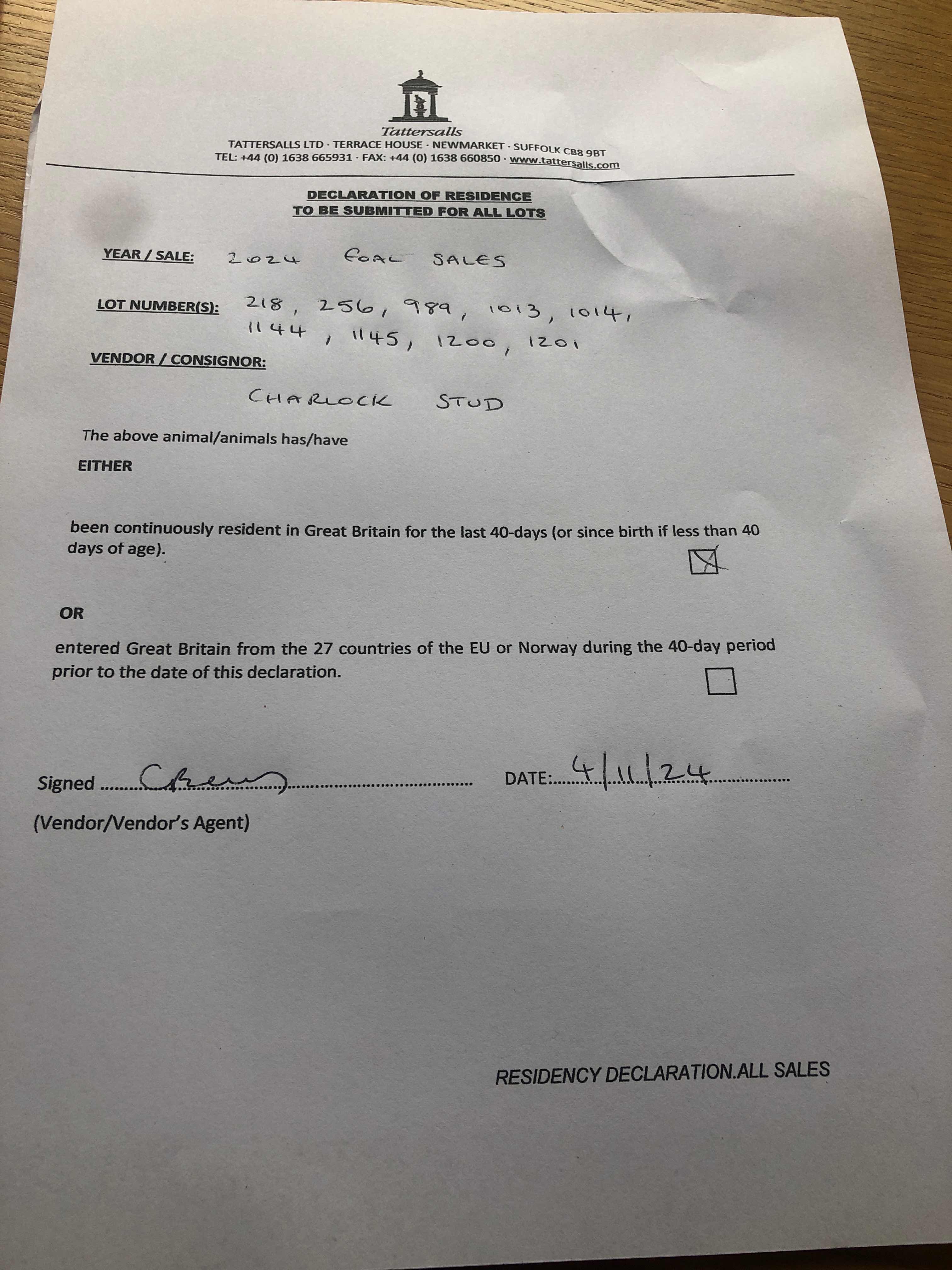 October Yearling Sale, Book 3 2025 lot 1707, Charlock Stud=>RJ Manning 11,000 gns