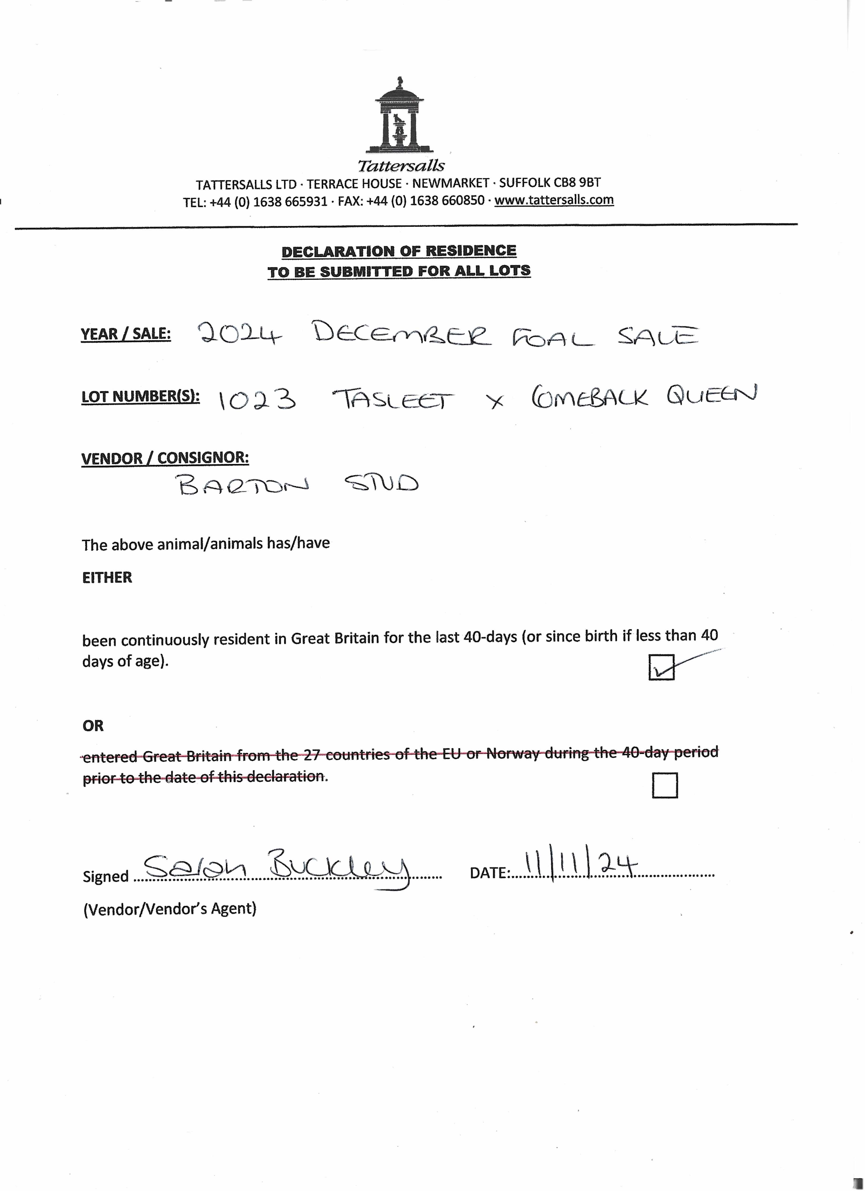 Consignor: Barton Stud