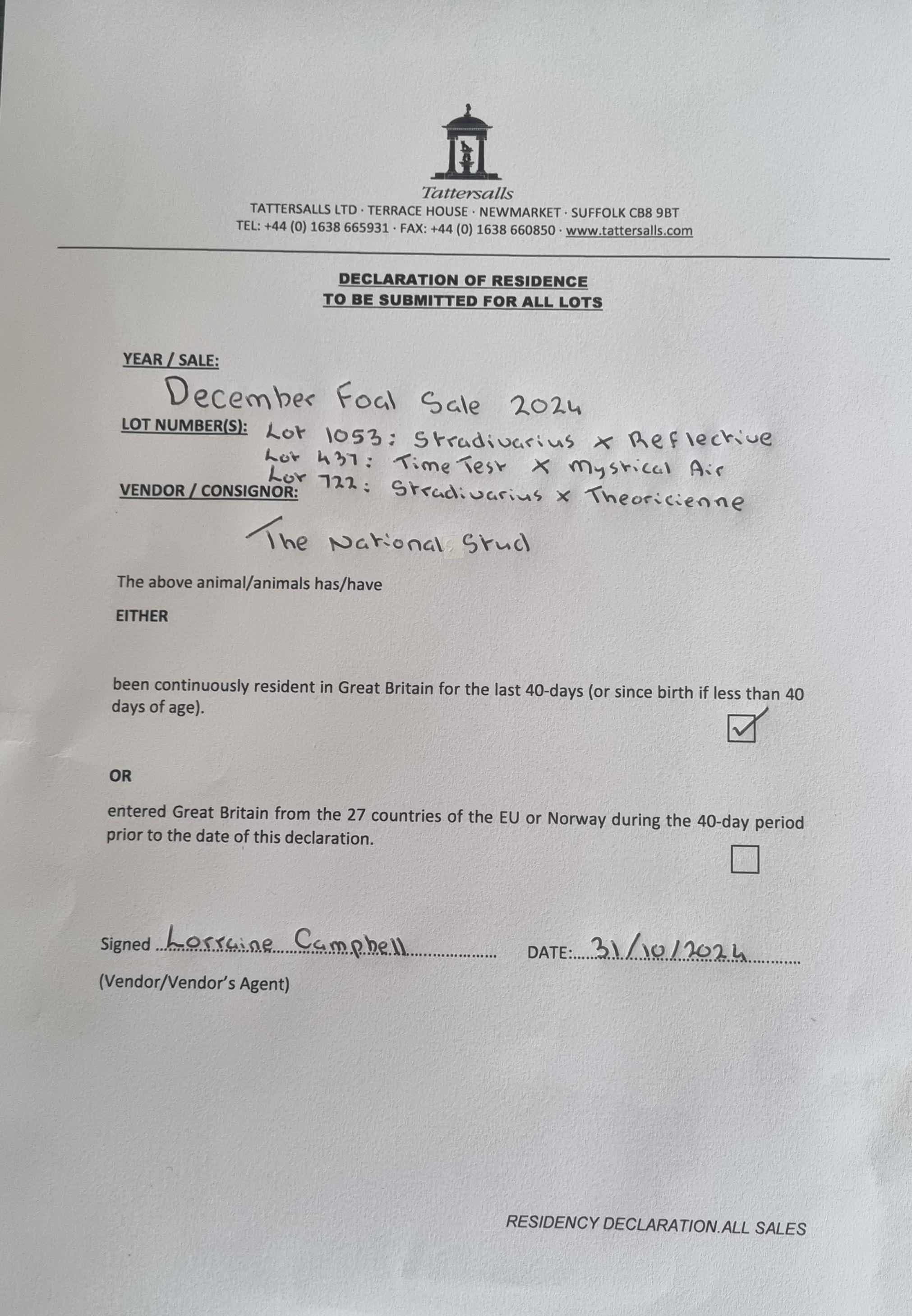 December Mare Sale 2023 lot 1301 Halfwaytothemoon (IRE) (M. by Sea The Stars (IRE)), Voute Sales Ltd. (Agent)=>Vendor 70,000 gns