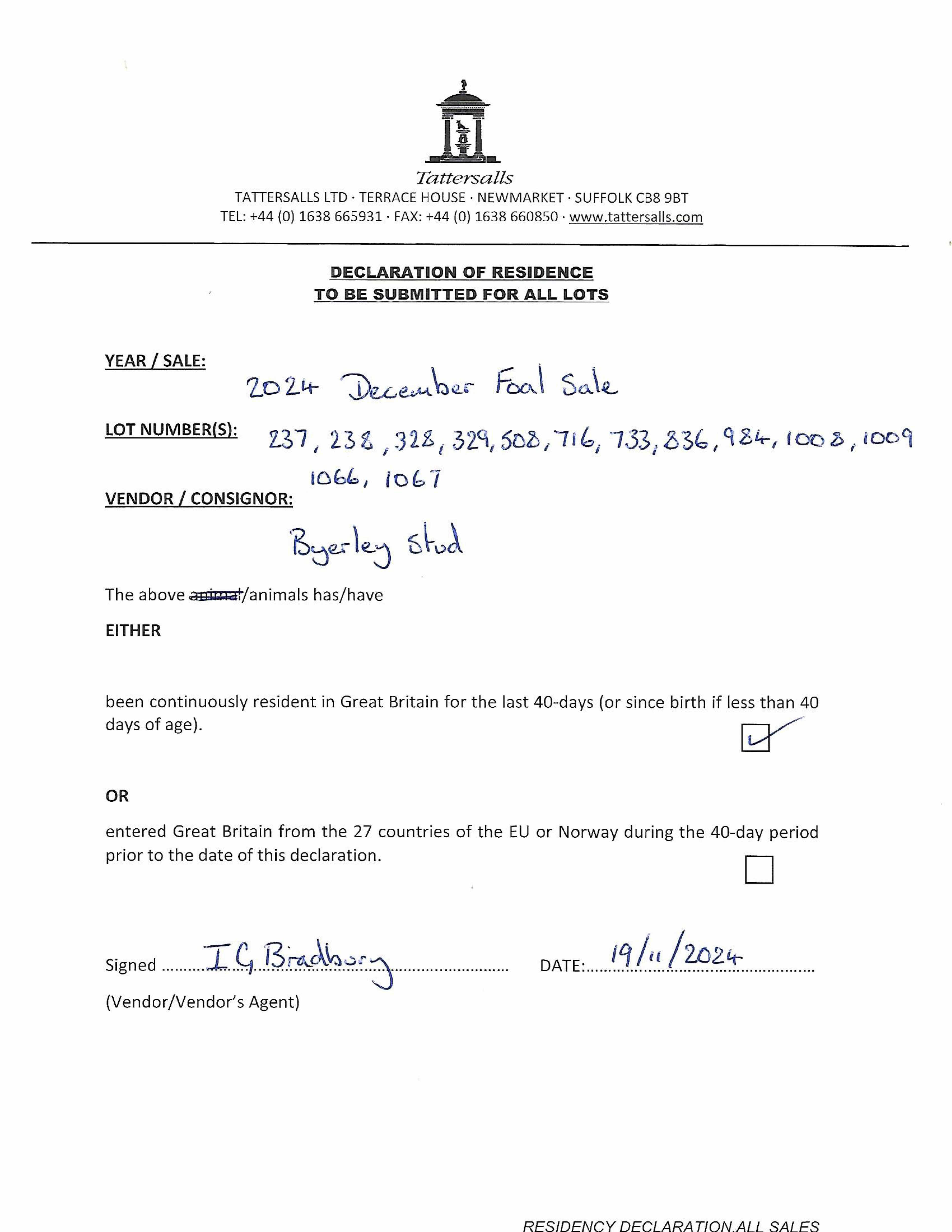 December Foal Sale 2025 lot 1070 F. by Ardad (IRE) 2025, Byerley Stud=>Vendor 12,000 gns