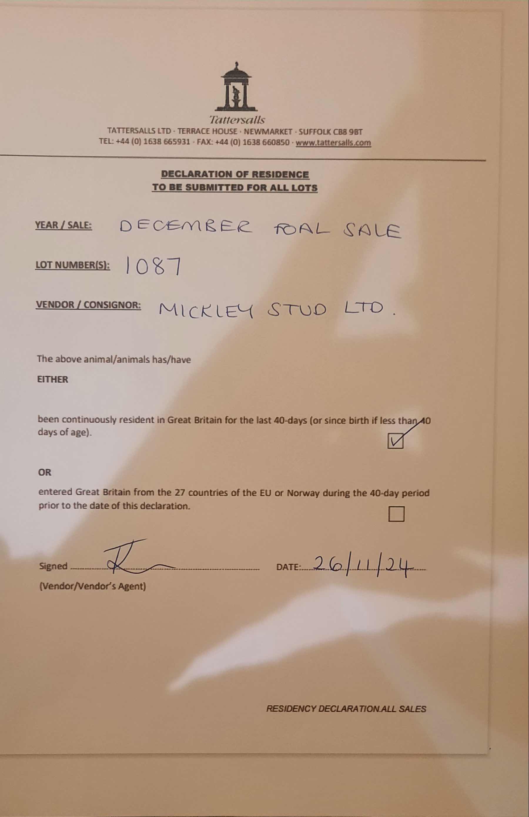 Lot 1087 Perfect Power (IRE) /Hipsway (IRE) B.C. (GB)