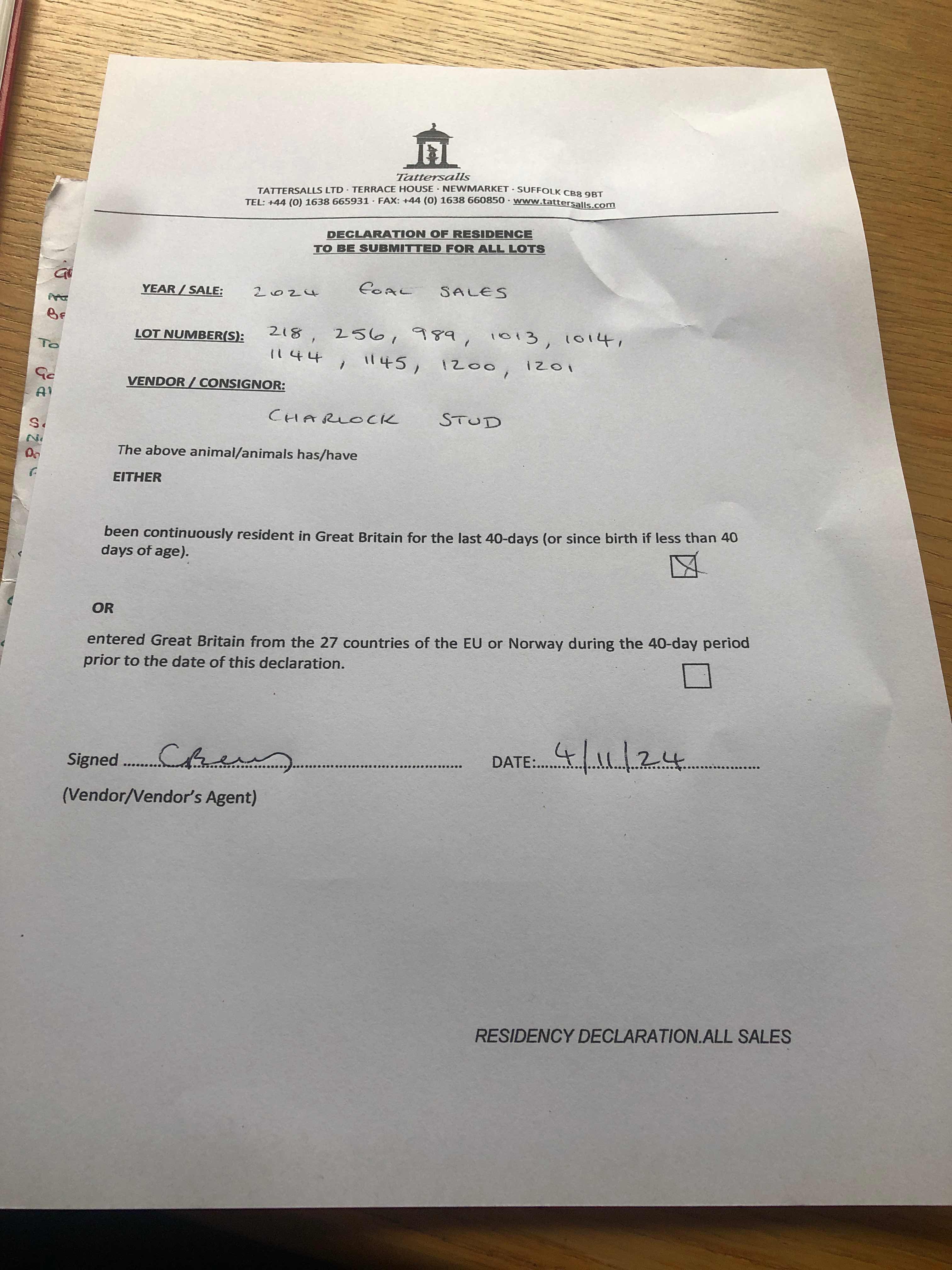 December Foal Sale 2023 lot 1100 F. 2023, Charlock Stud=>S & B Bloodstock 9,500 gns