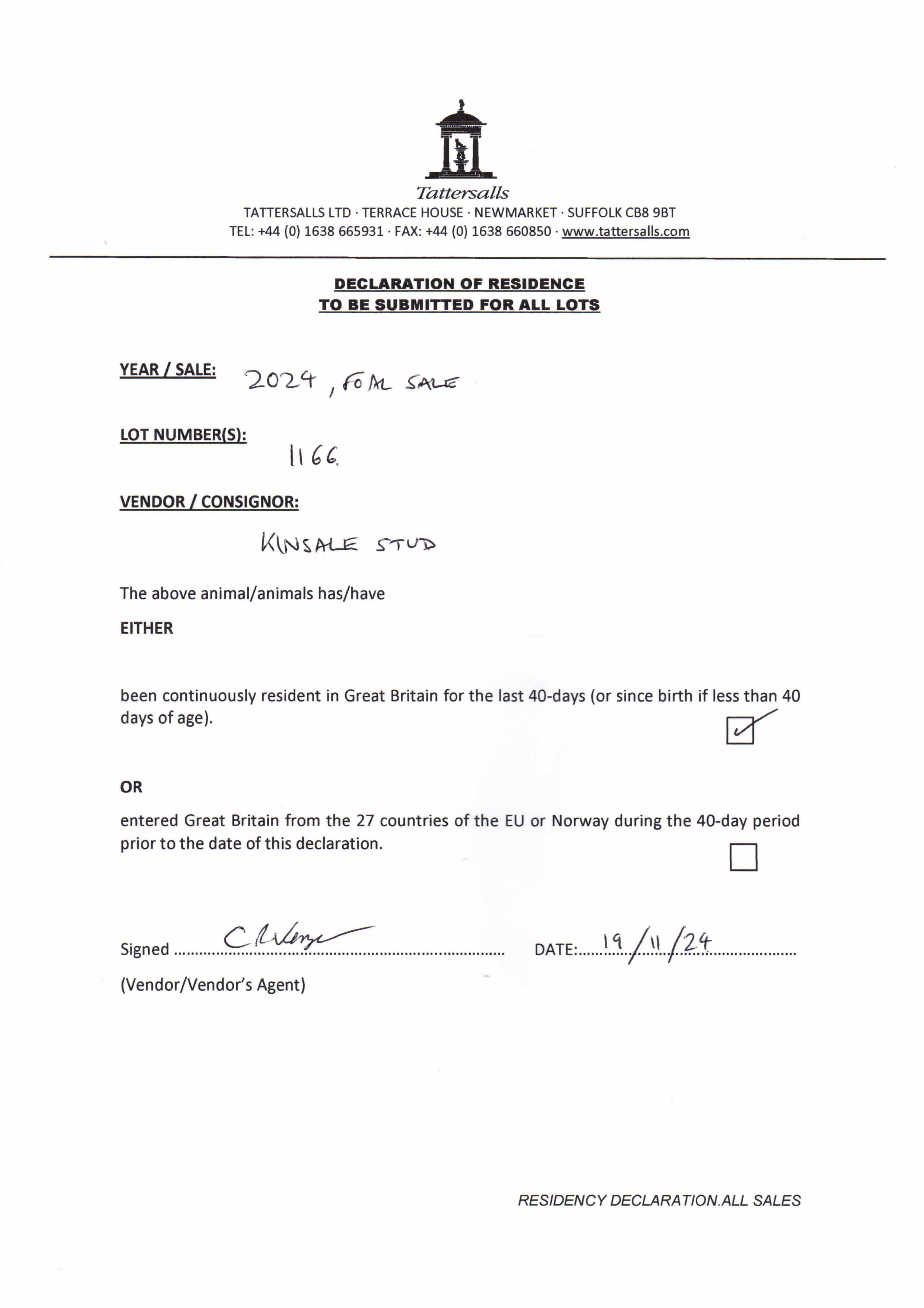 Consignor: Kinsale Stud