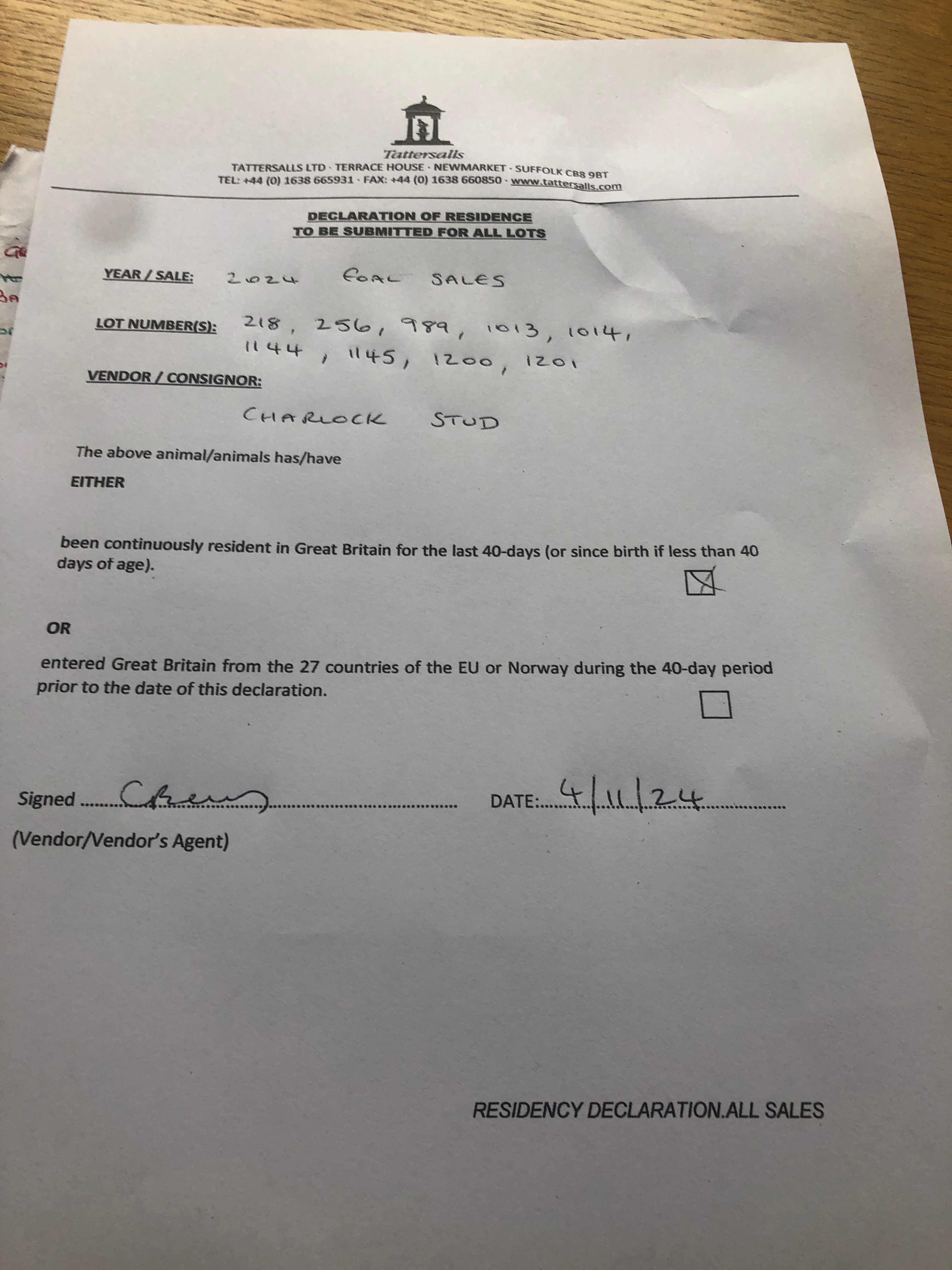 Consignor: Charlock Stud
