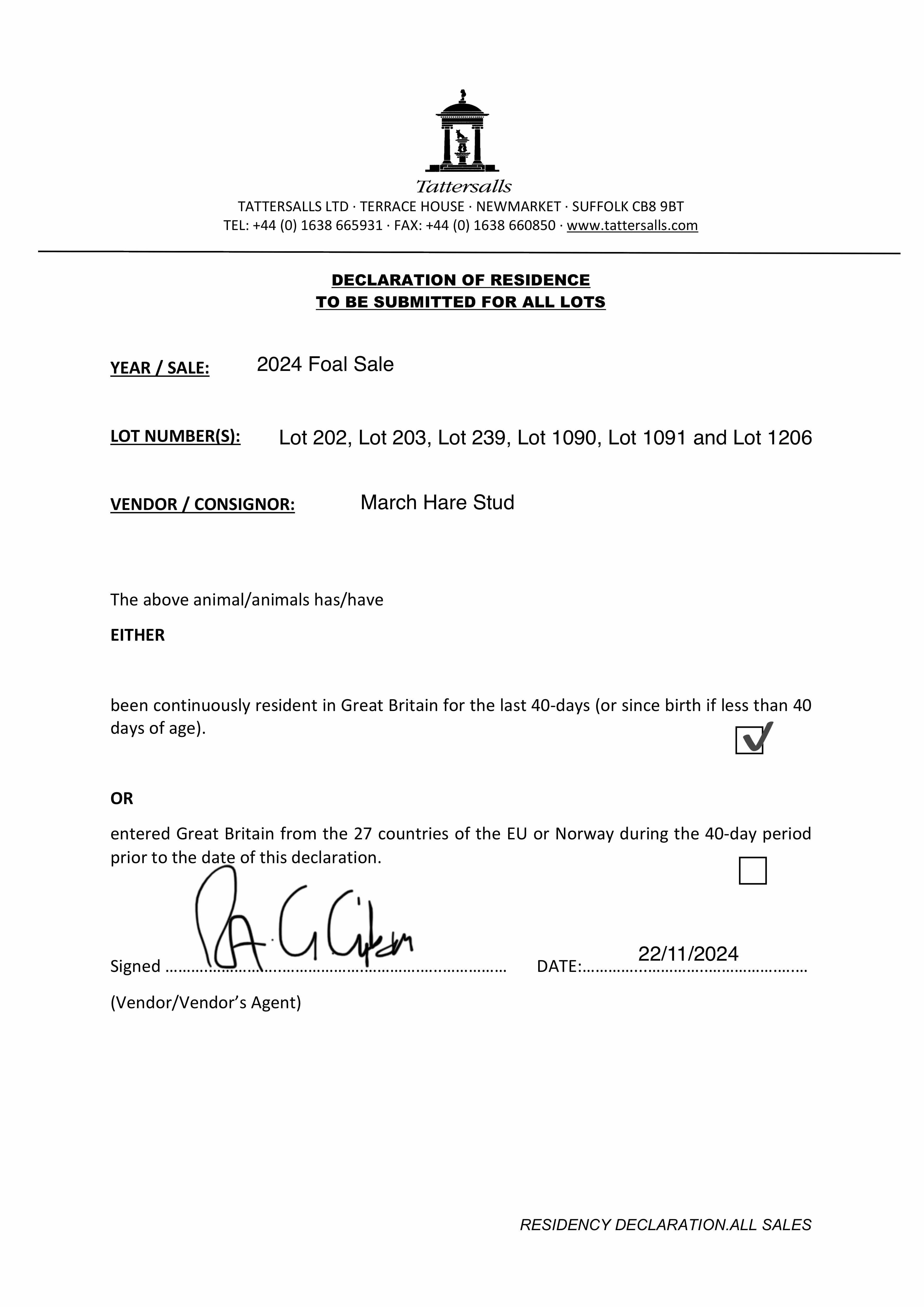 Consignor: March Hare Stud