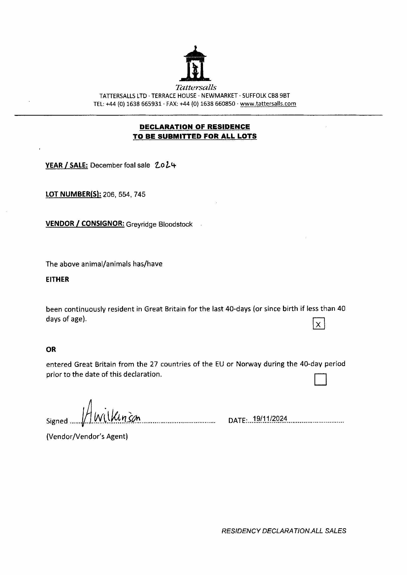 Consignor: Greyridge Bloodstock