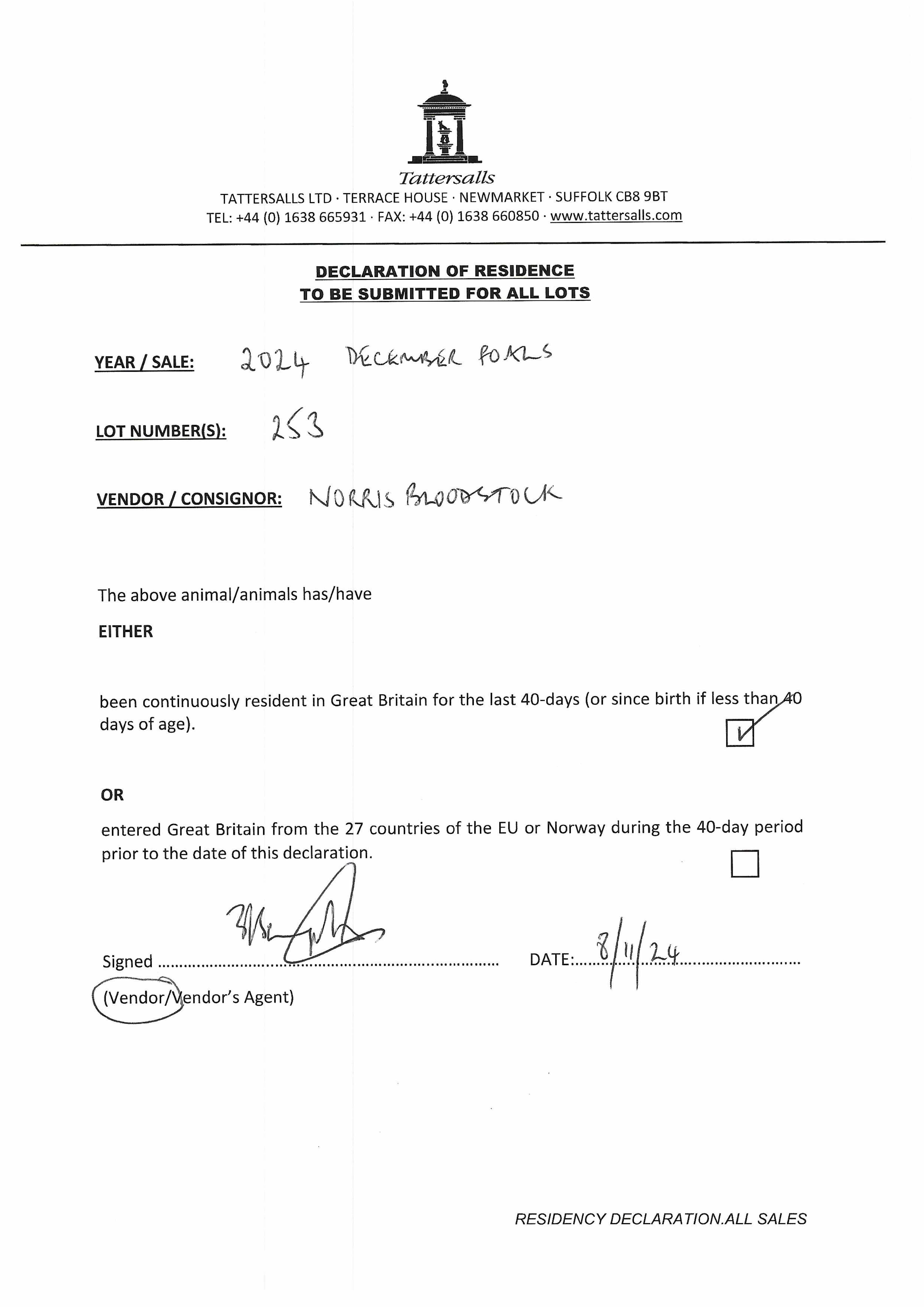 Contact: Jenny Norris ✆ 07788973272 ✉ jenny@norrisbloodstock.com