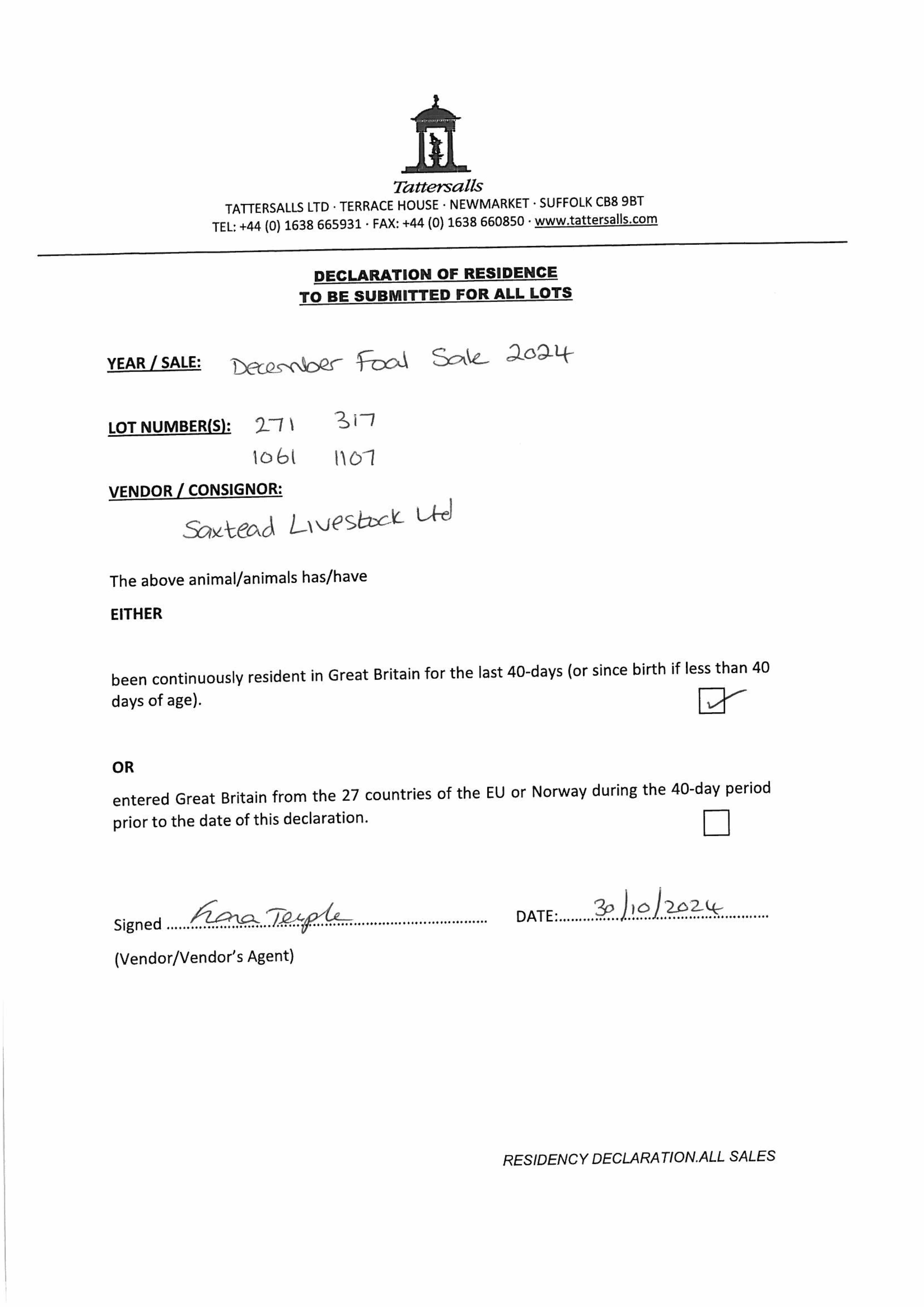December Foal Sale 2025 lot 1000 F. by Stradivarius (IRE) 2025, Barton Stud=>Stroud Coleman Bloodstock 17,000 gns