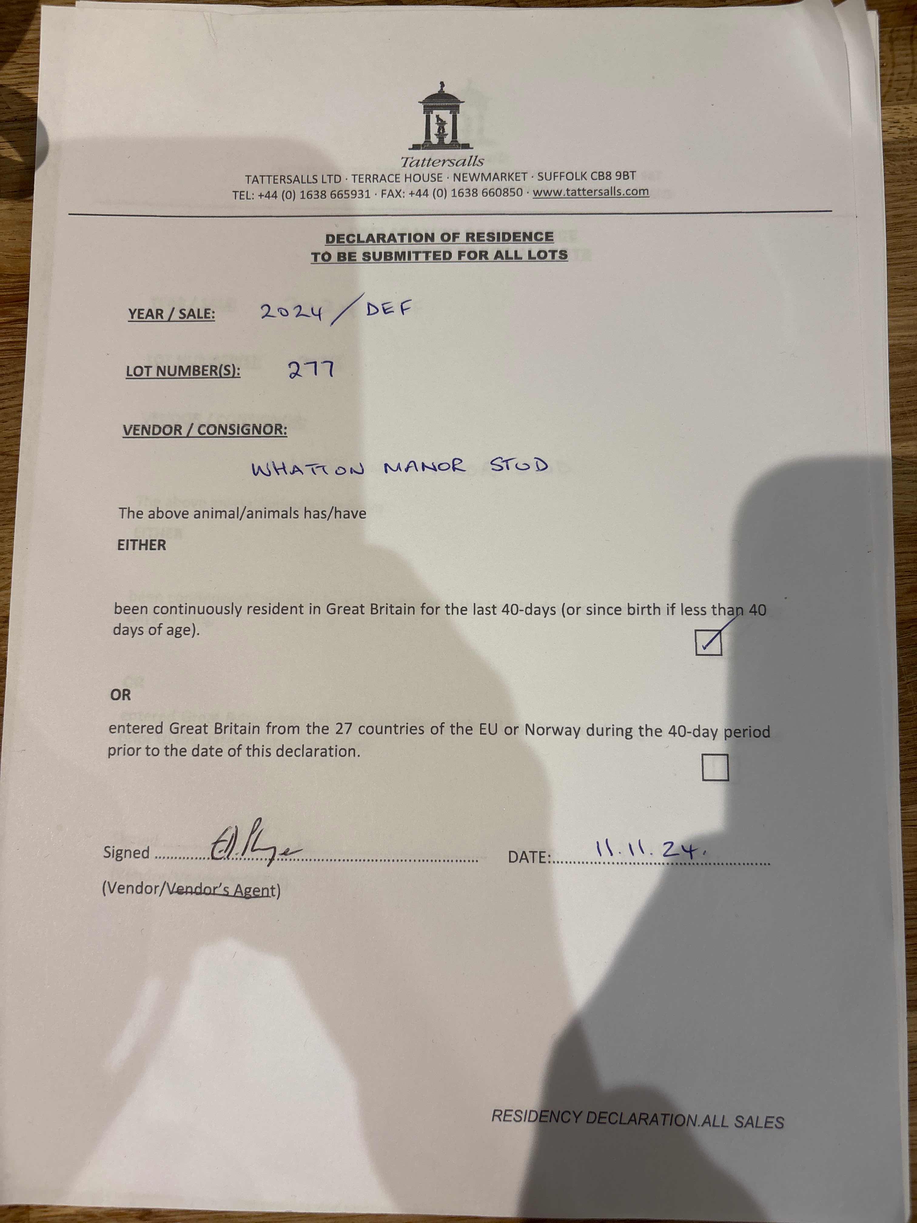 Consignor: Whatton Manor Stud