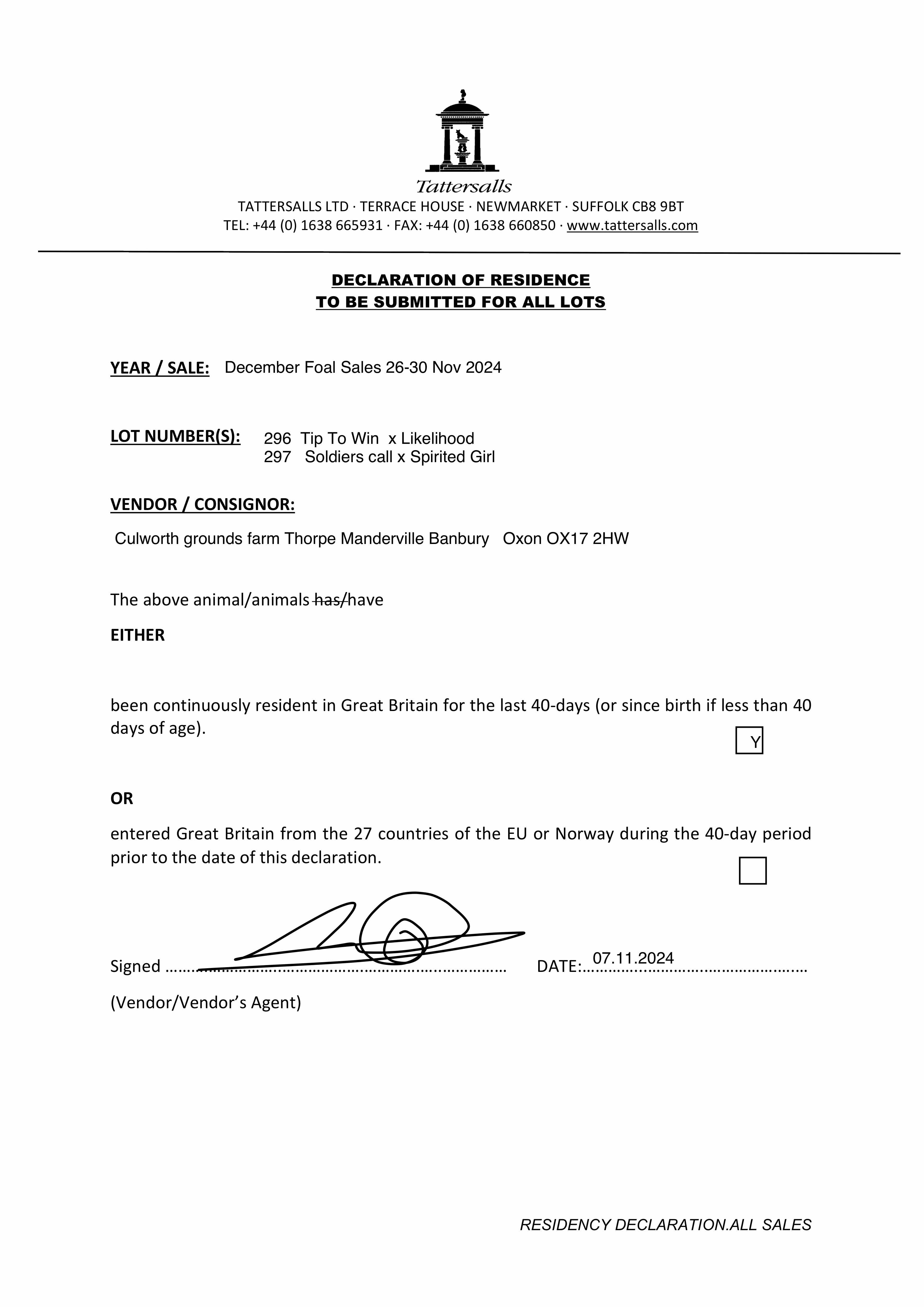 Online Sale - 19th November 2025 lot 20, Norris Bloodstock=>Vendor 8,000 gns