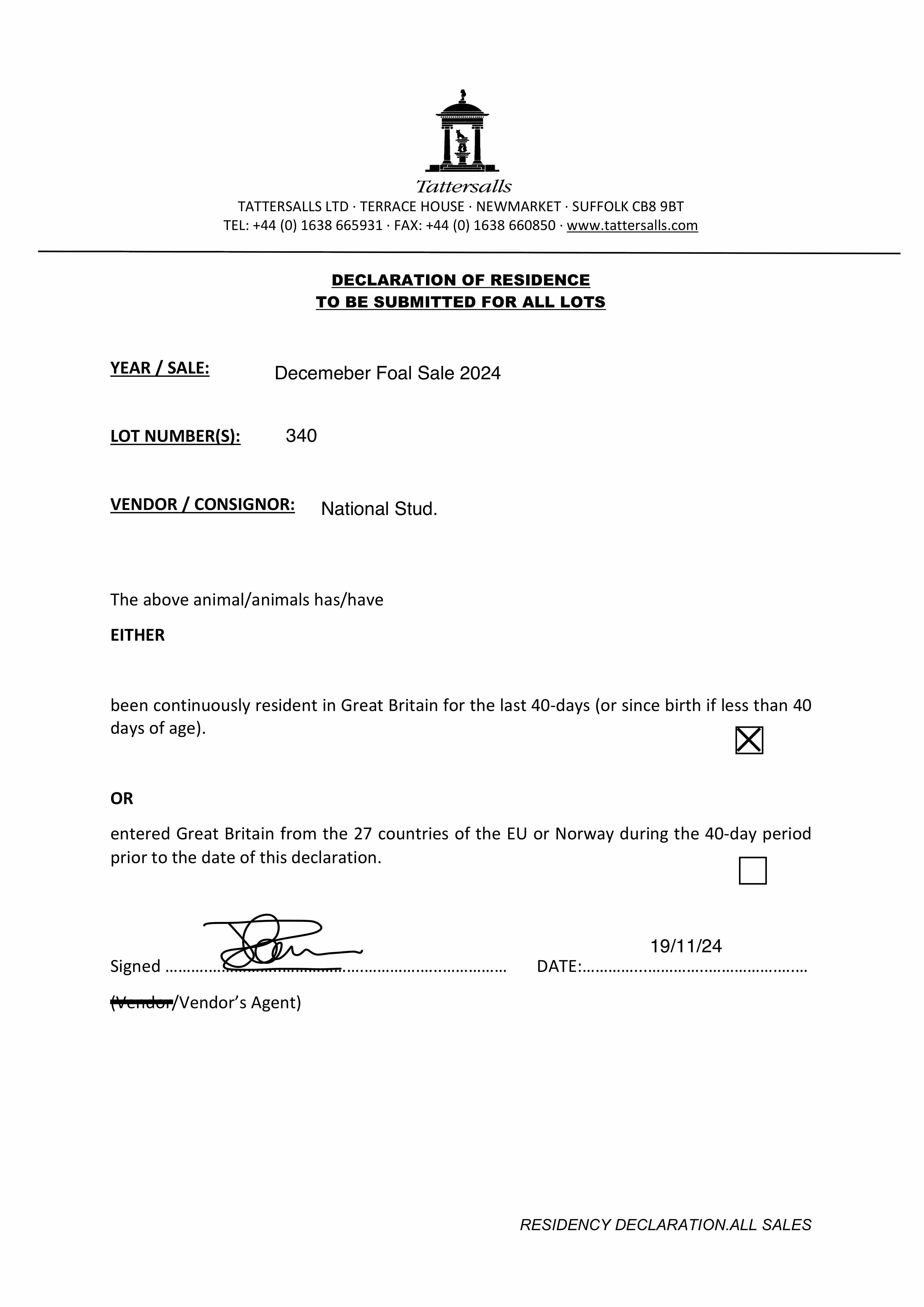 Consignor: The National Stud Ltd.