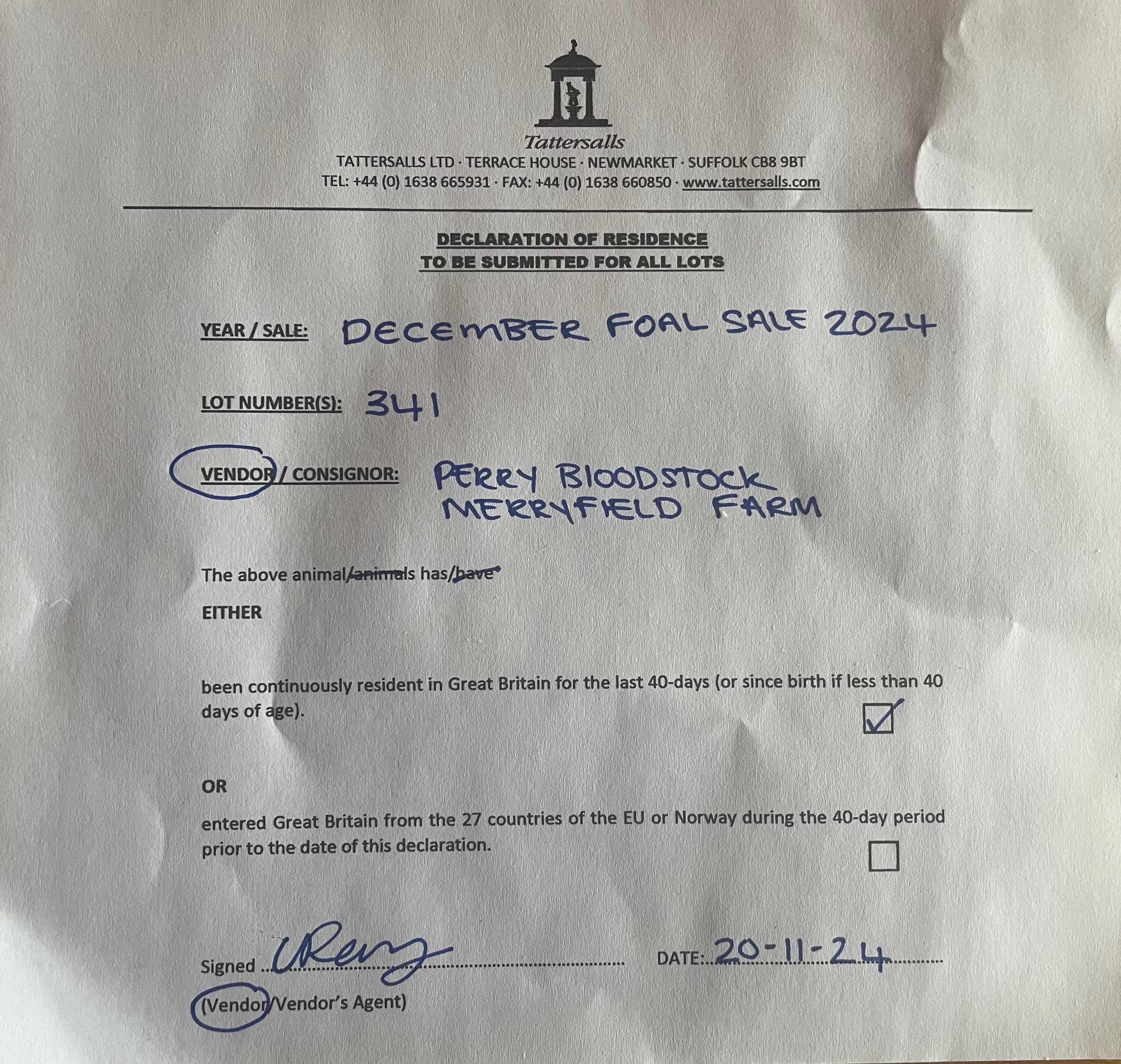 December Foal Sale 2023 lot 1150 F. by Land Force (IRE) 2023, Charlock Stud=>Vendor 2,000 gns