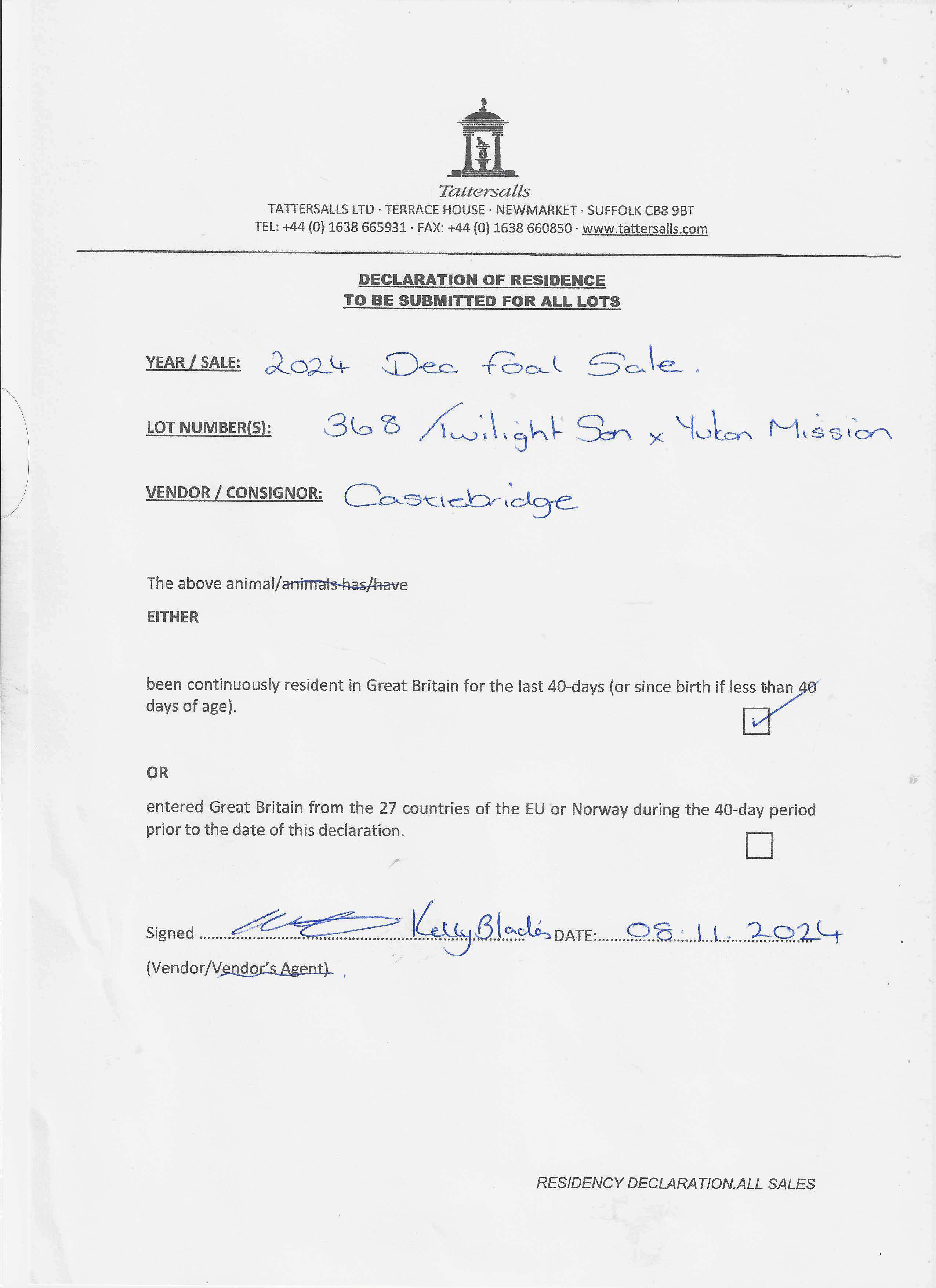 Consignor: The Castlebridge Consignment