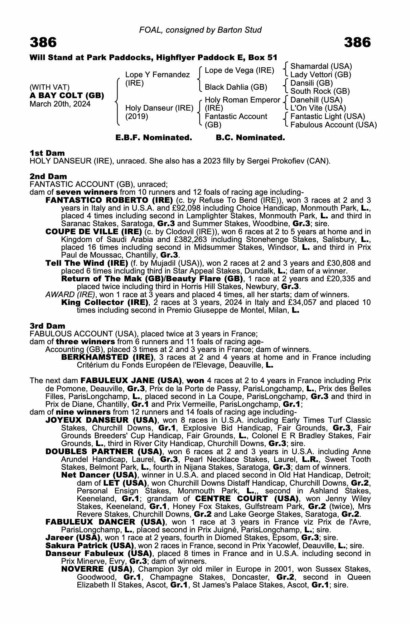 Somerville Yearling Sale 2024 lot 184 F. by Sergei Prokofiev (CAN) 2023, Forefront Bloodstock=>Lot Not Sold 7,500 gns