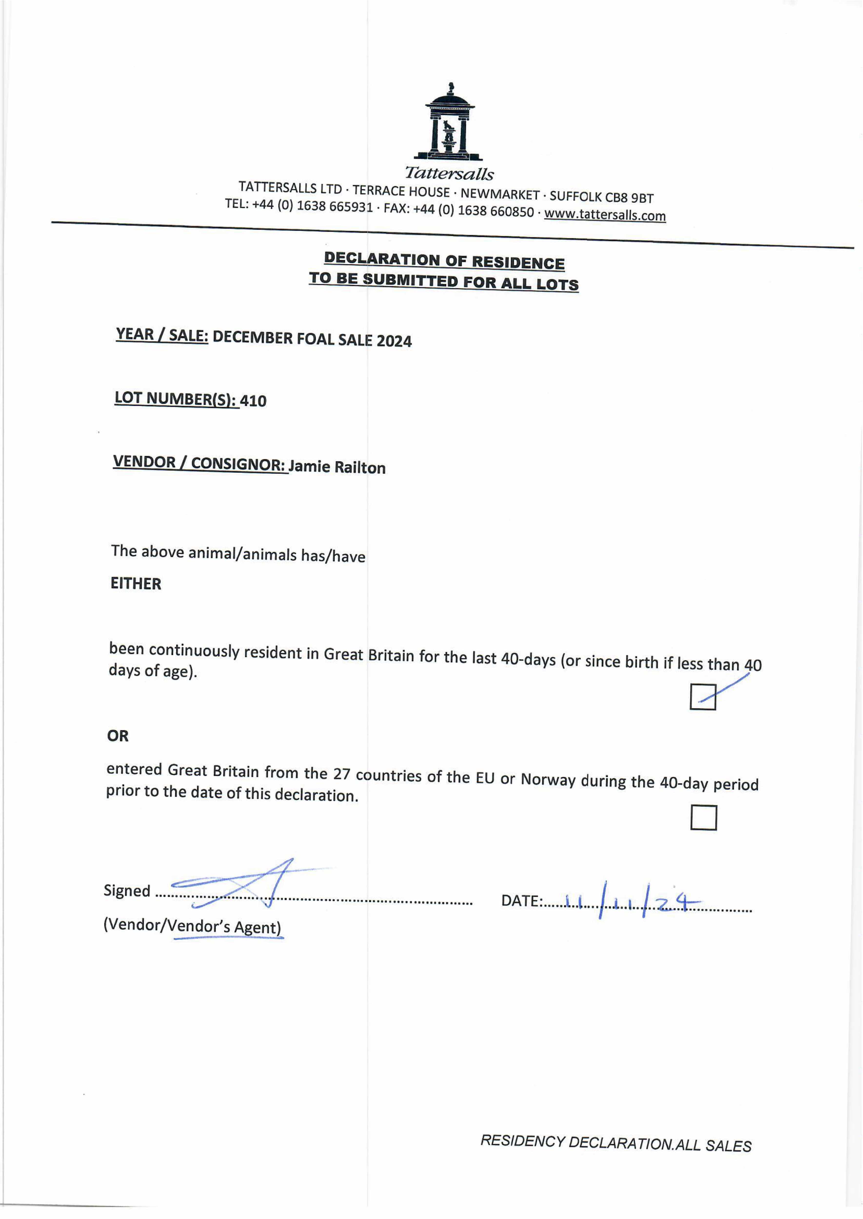 Consignor: Jamie Railton (Agent)