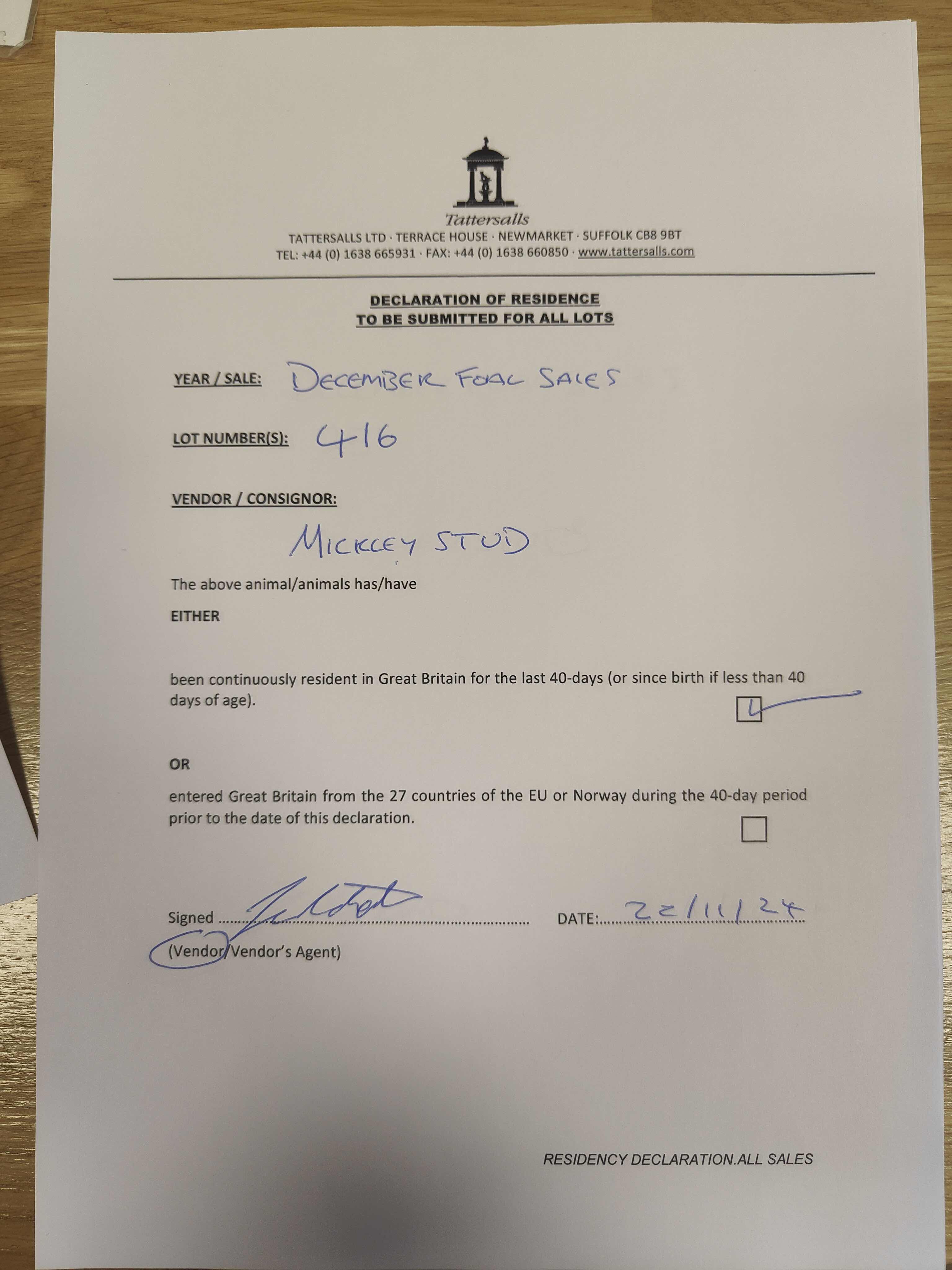 September Yearling Sale Part 1 2025 lot 327, Danesrath Stud=>Woodlands Lodge €43,000