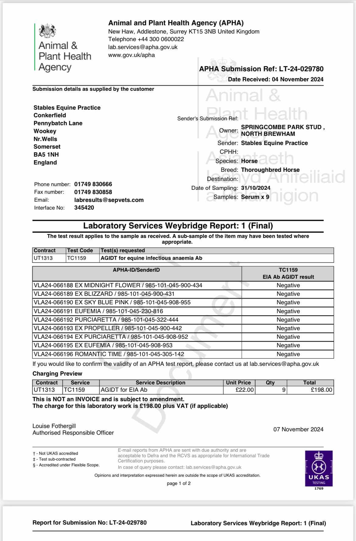 Official Veterinarian Declaration