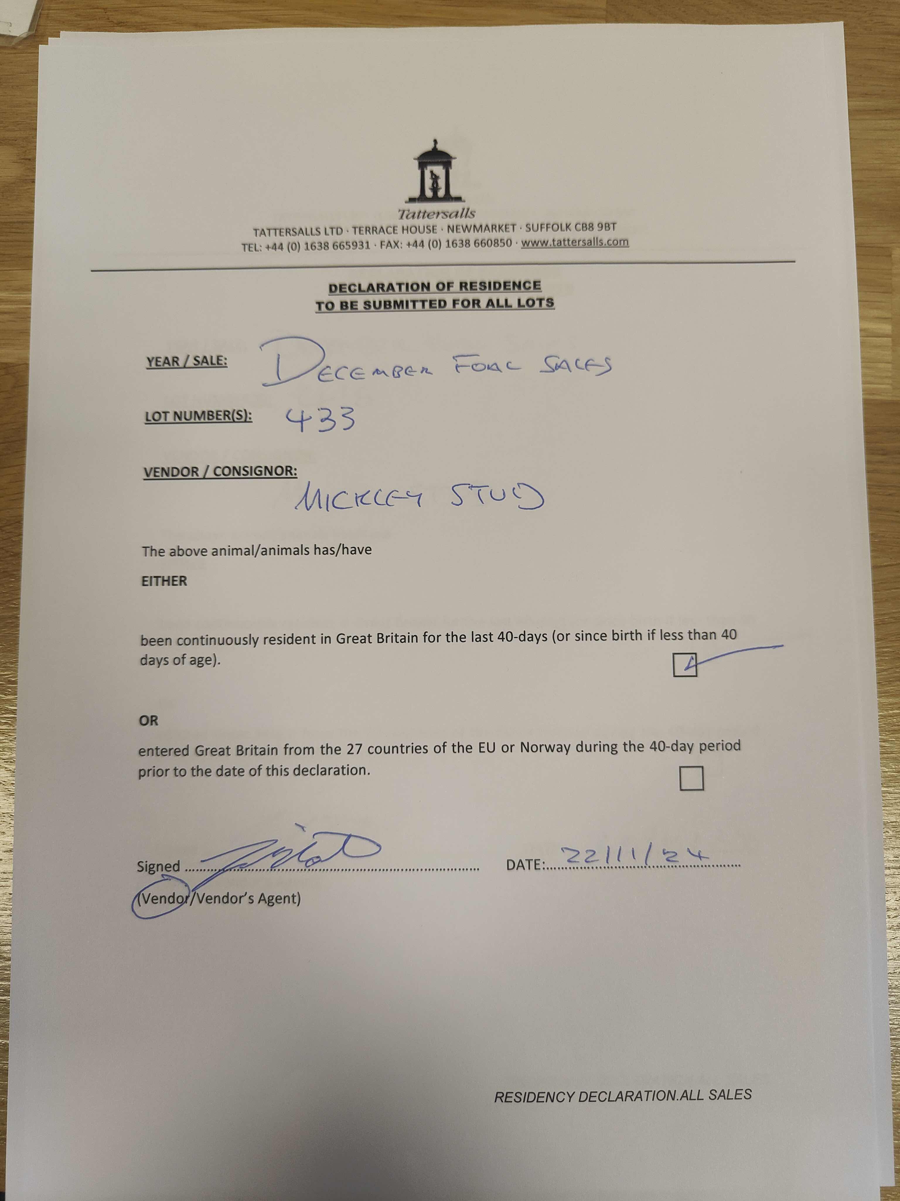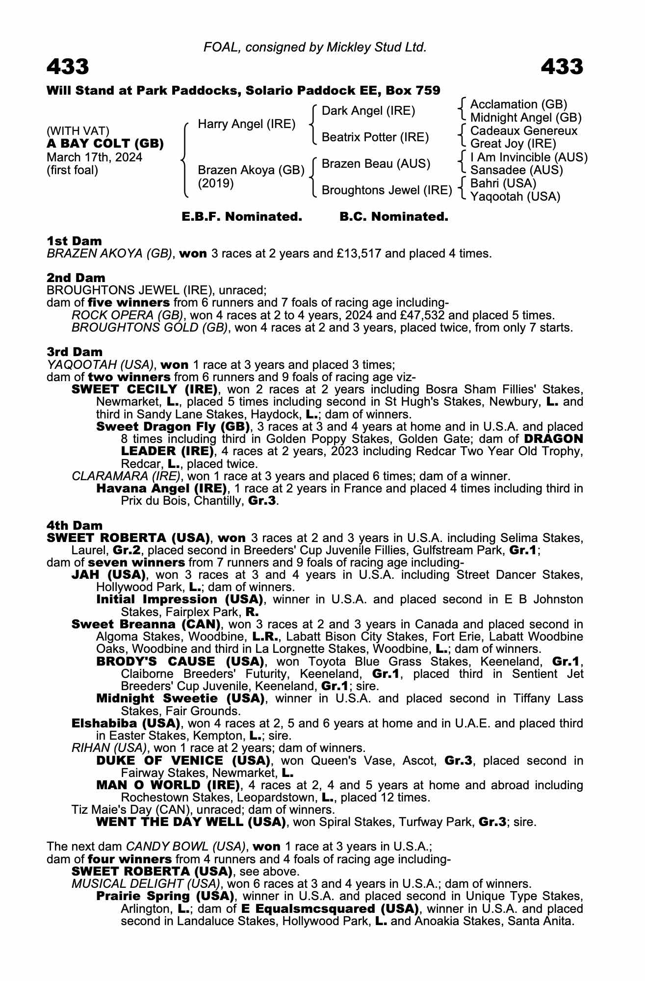 Consignor: Mickley Stud Ltd.