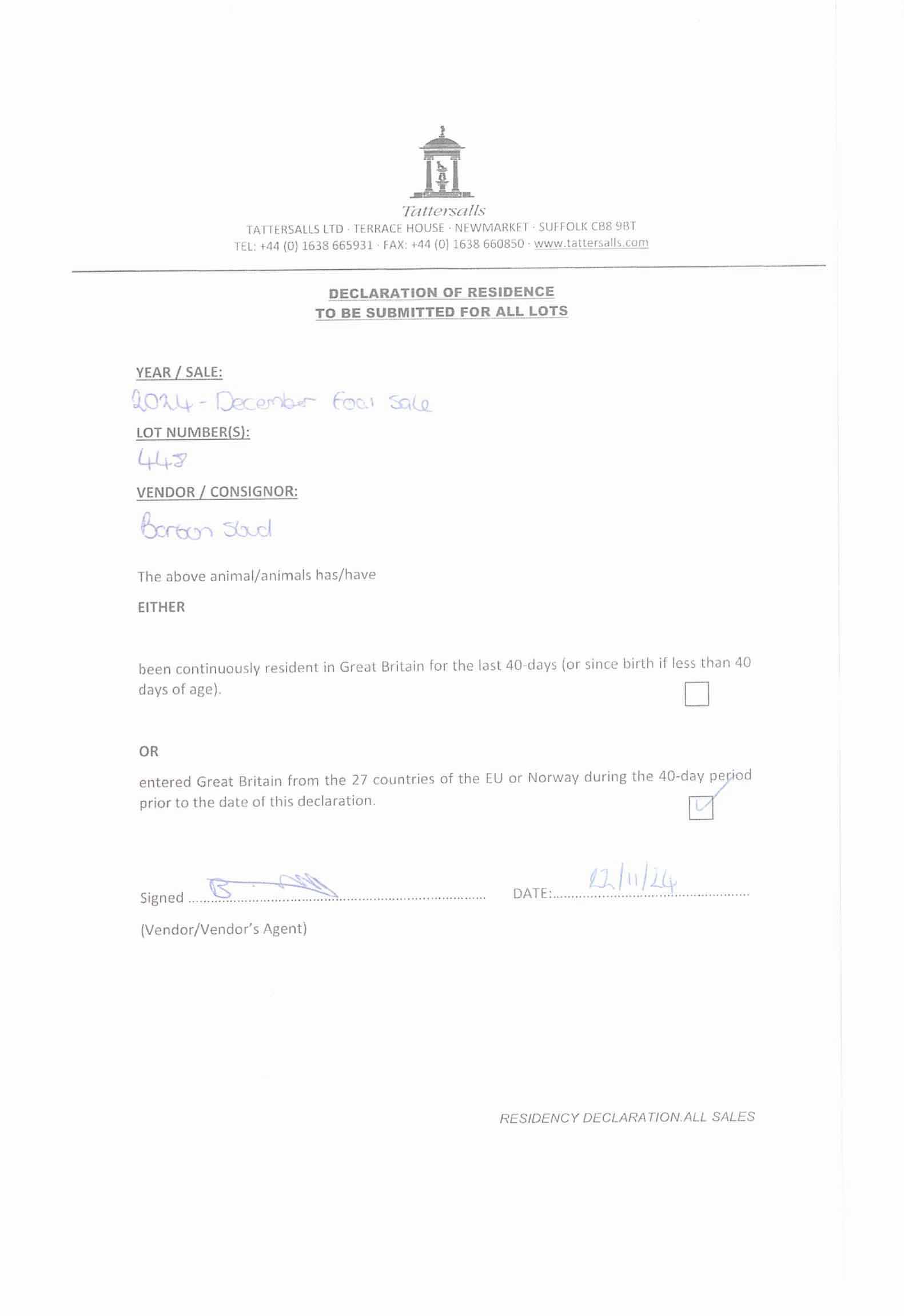 Consignor: Barton Stud