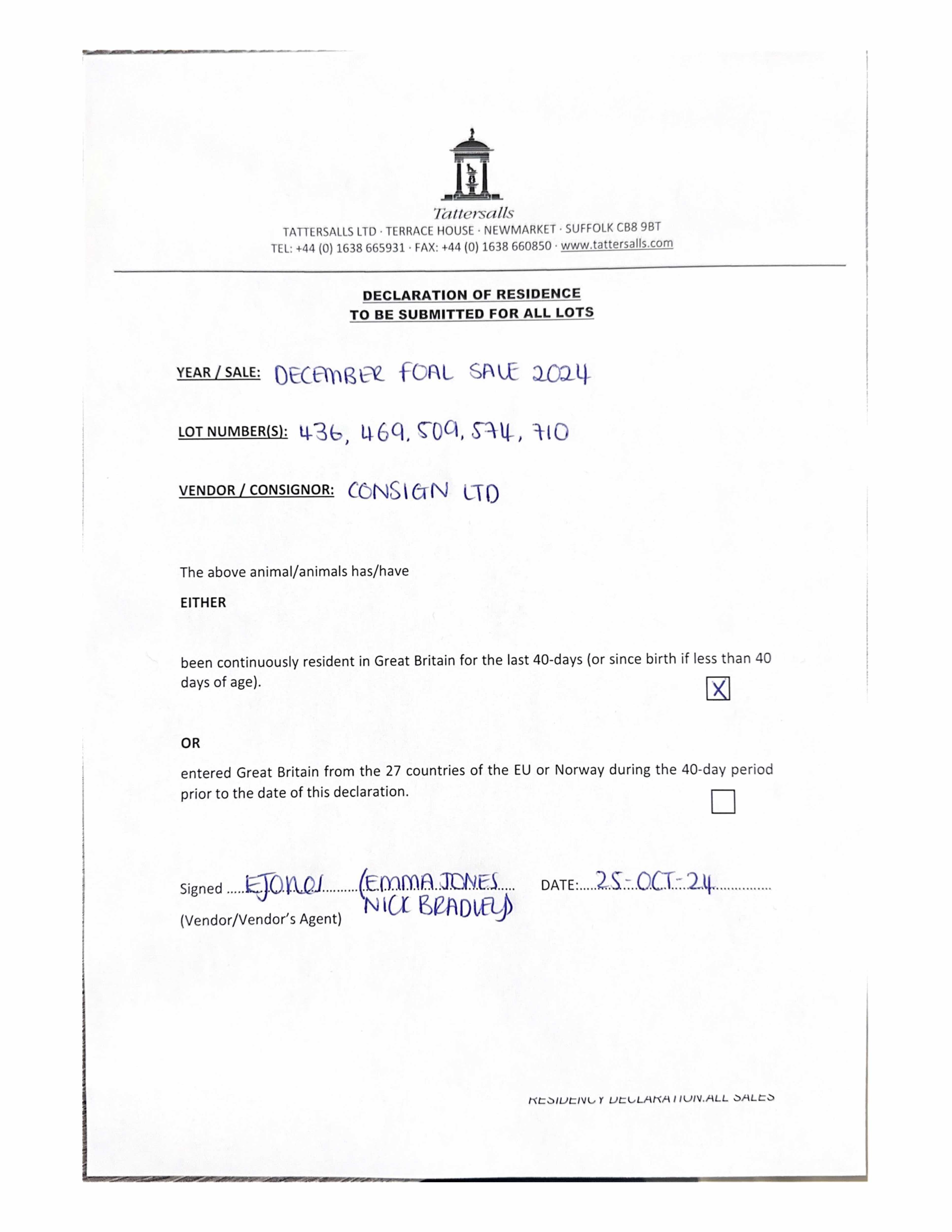 December Foal Sale 2023 lot 523 F. 2023, Jamie Railton (Agent)=>Glencoole Stud 41,000 gns