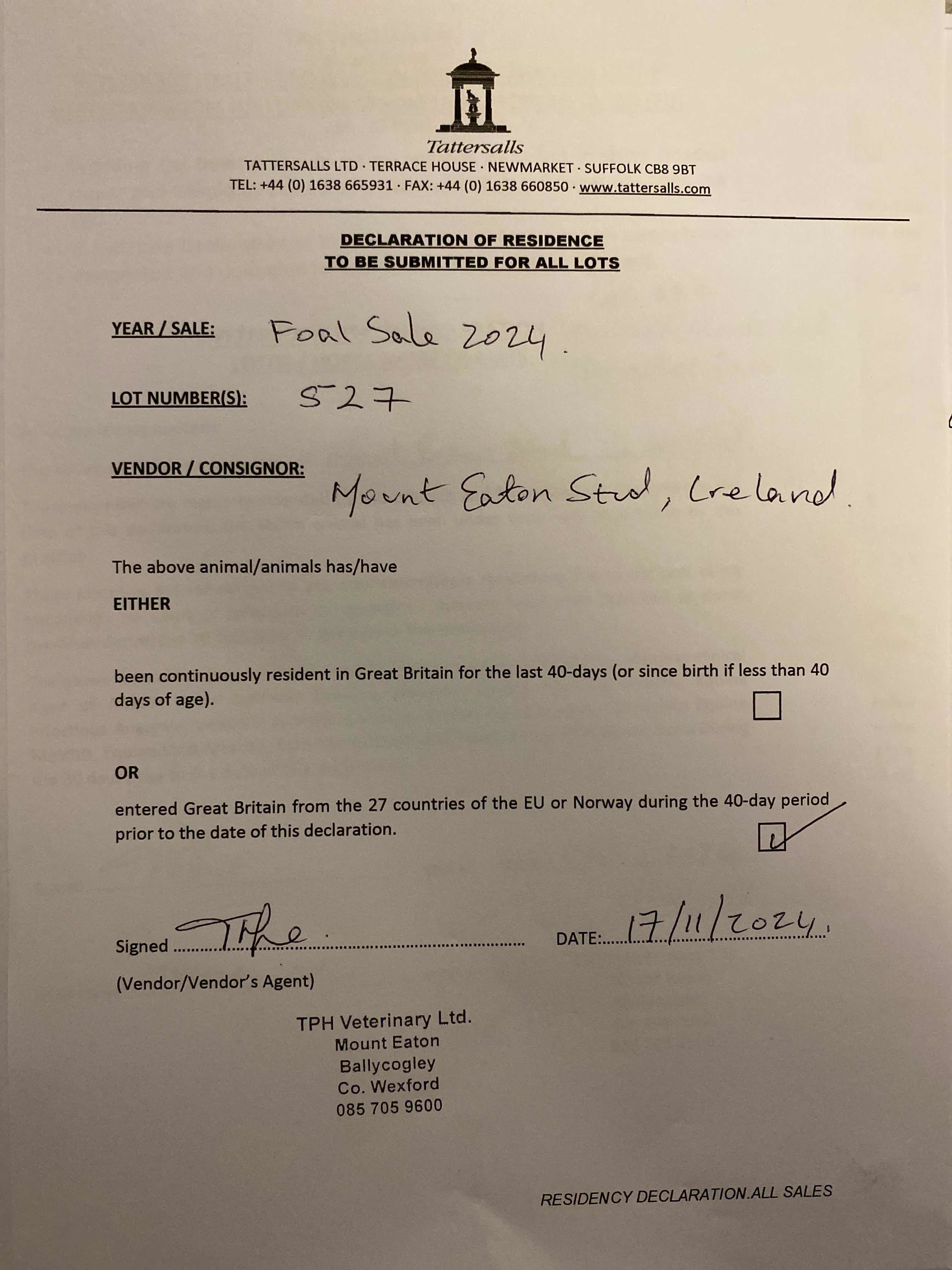 December Foal Sale 2021 lot 664 F. by Calyx (GB) 2021, Norelands Stud Ireland=>Siskin Lodge 38,000 gns