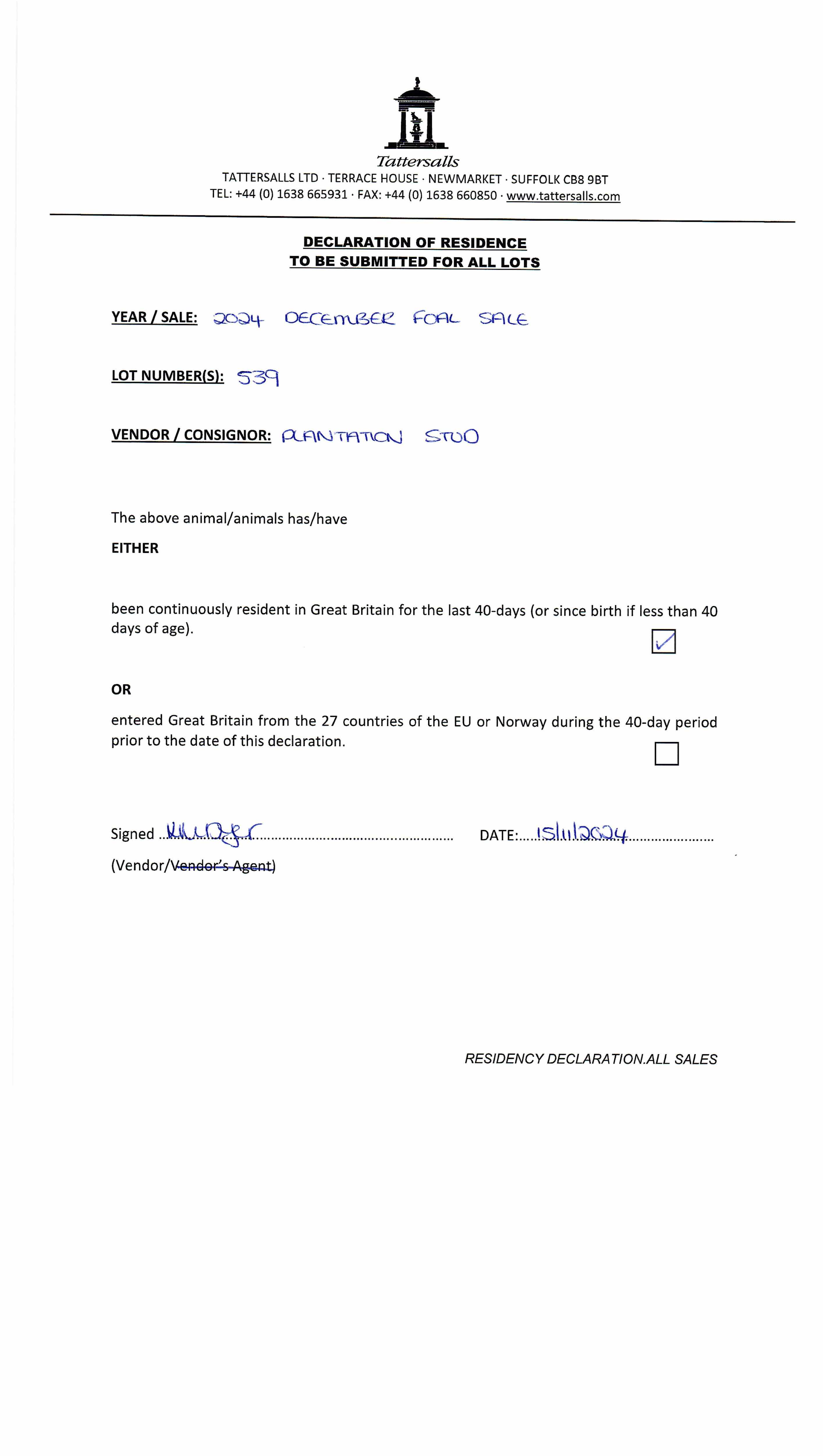 Consignor: Plantation Stud
