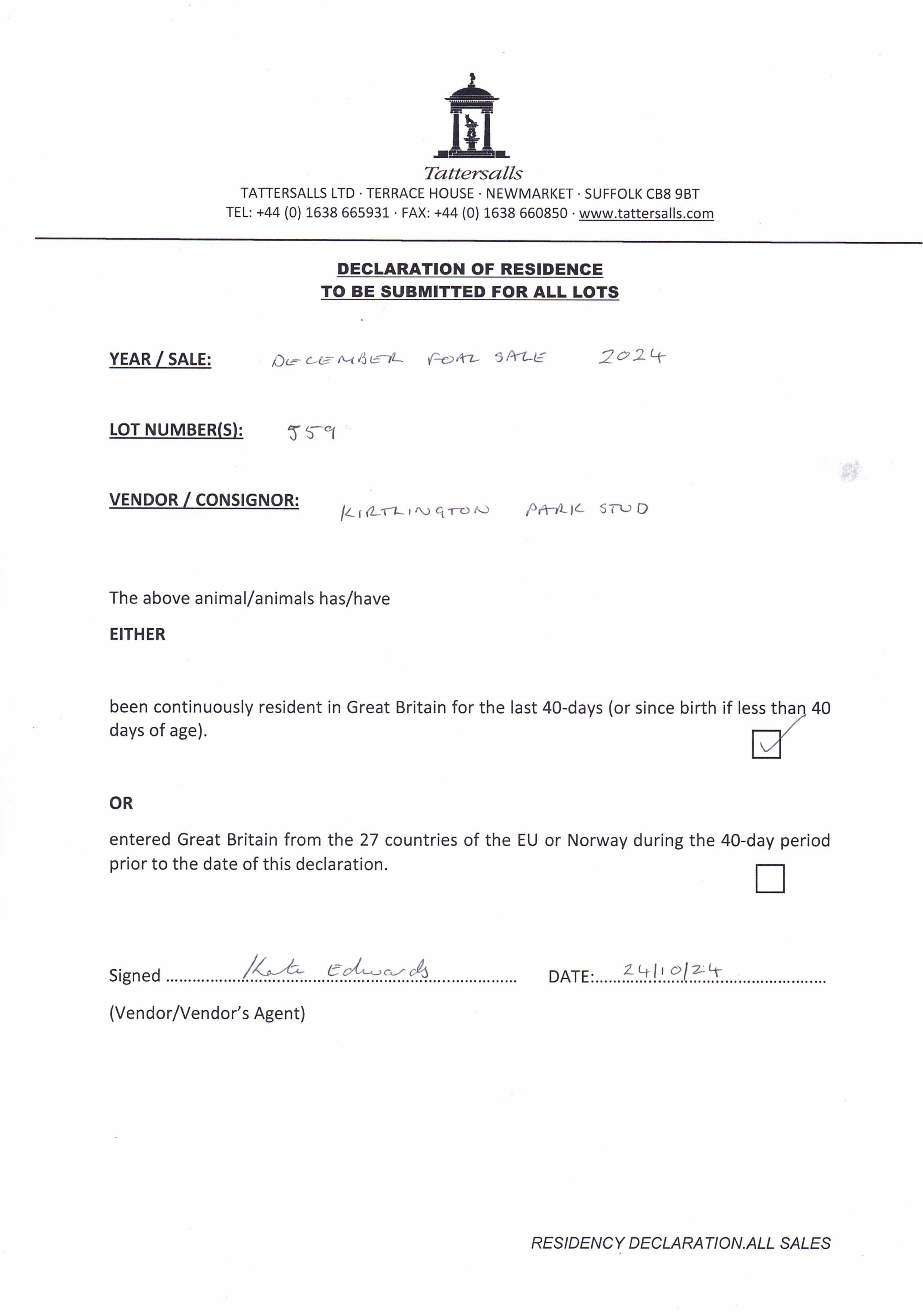 Consignor: Kirtlington Park Stud