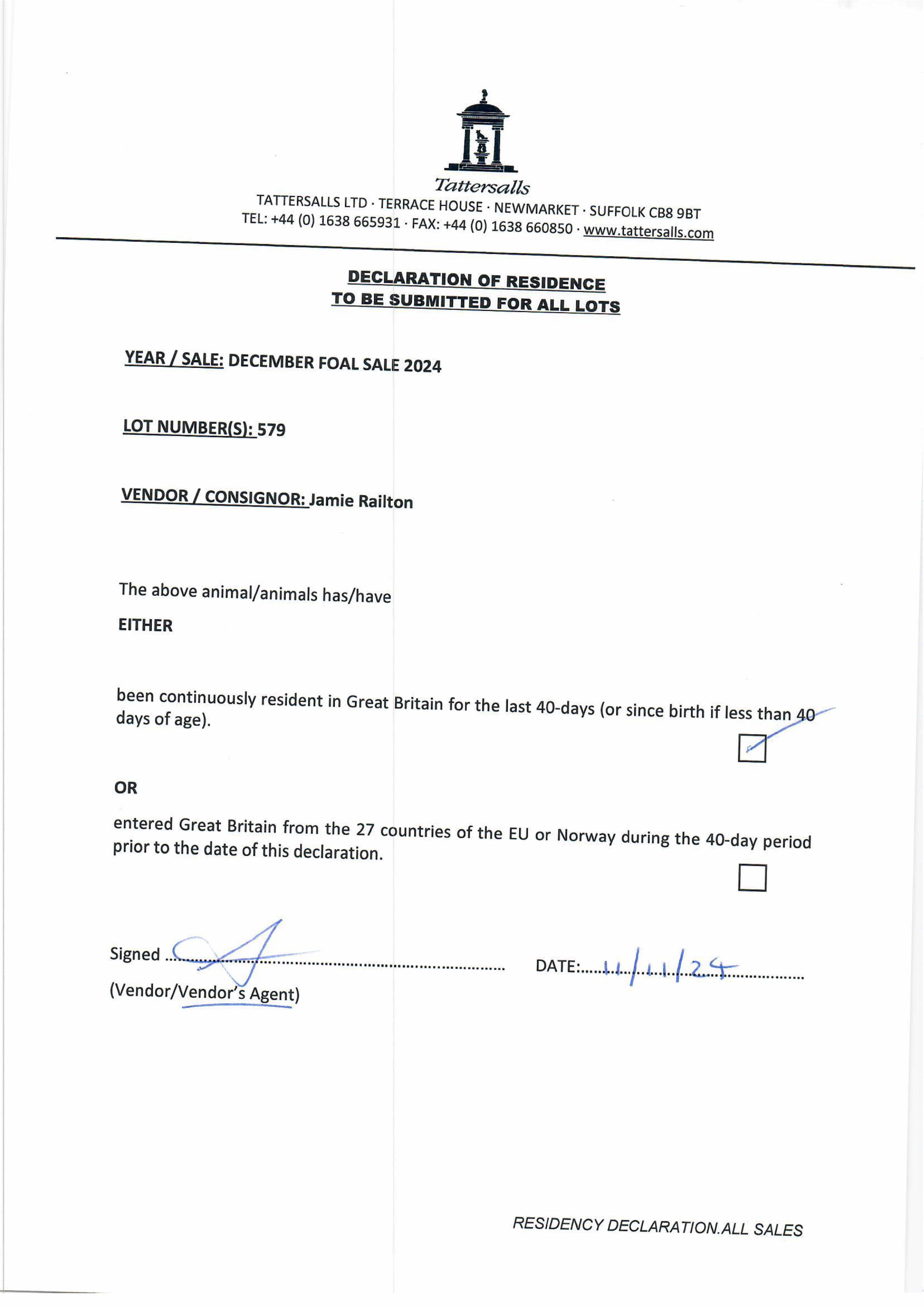December Foal Sale 2025 lot 825 C. by Blue Point (IRE) 2025, Jamie Railton (Agent)=>Vista Bloodstock 250,000 gns