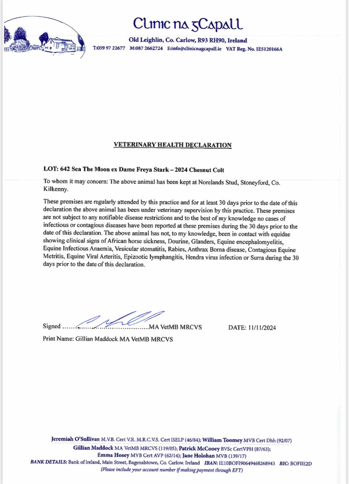 Consignor: Norelands, Ireland