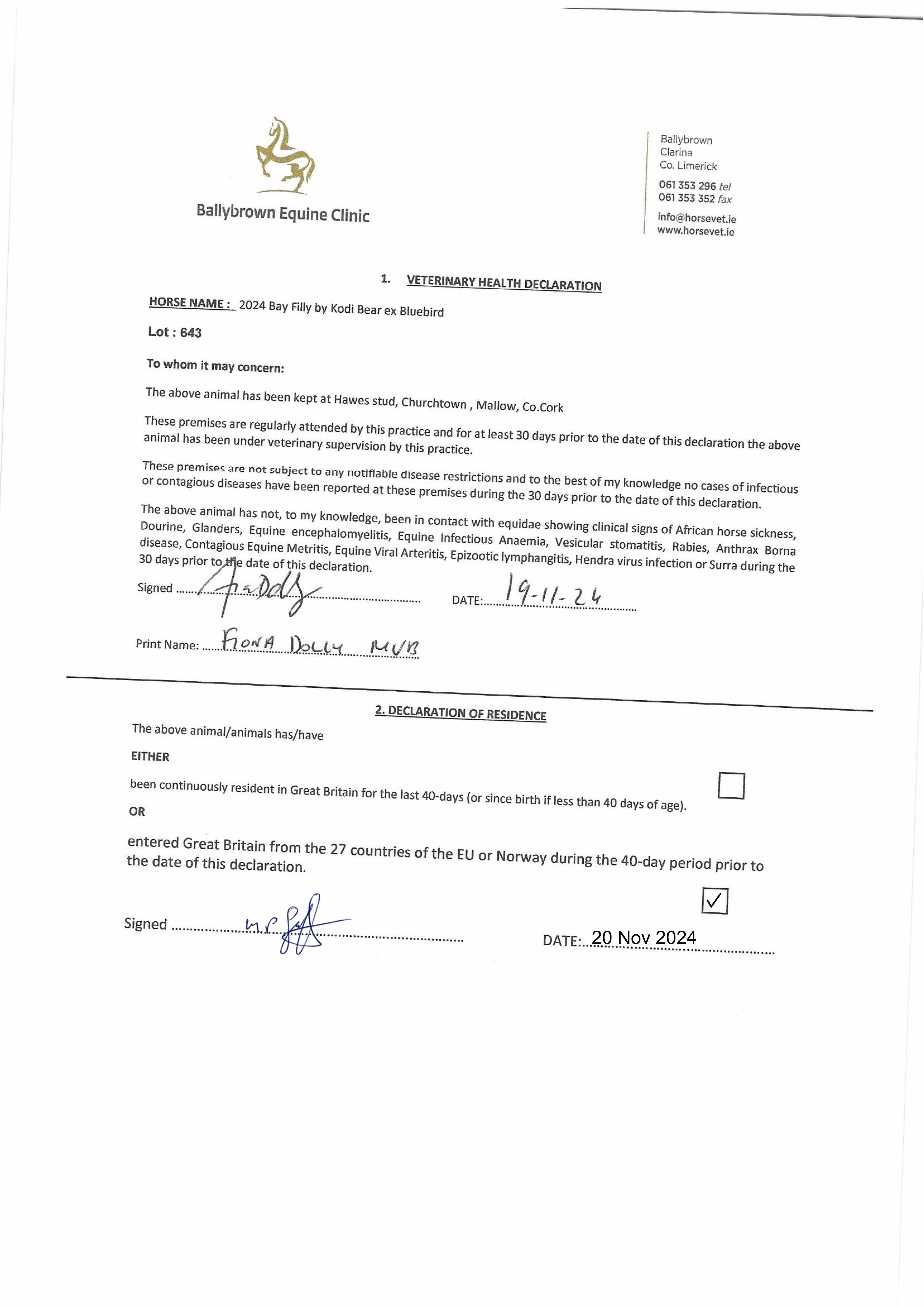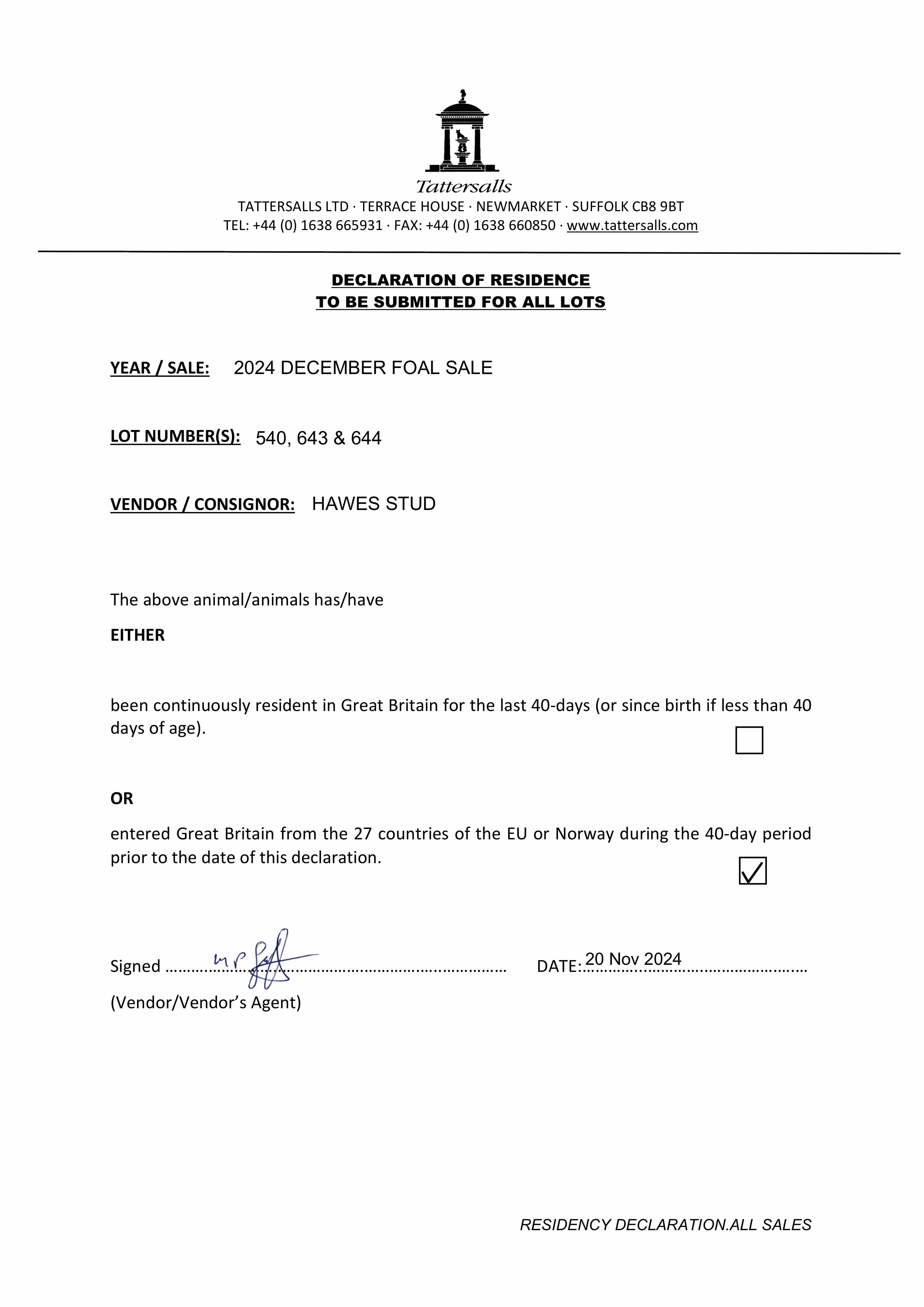 Consignor: Hawes Stud, Ireland