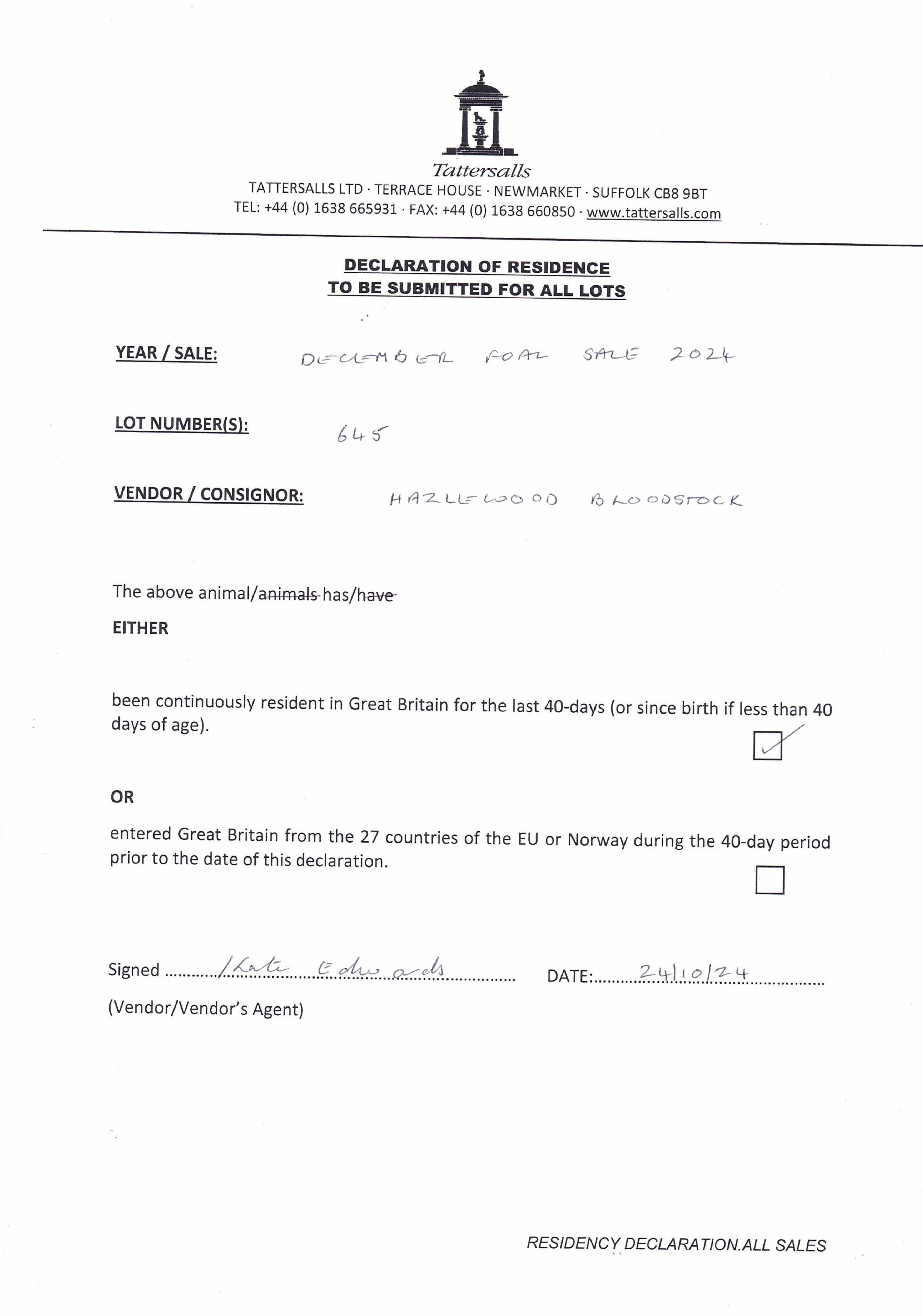 Consignor: Hazelwood Bloodstock