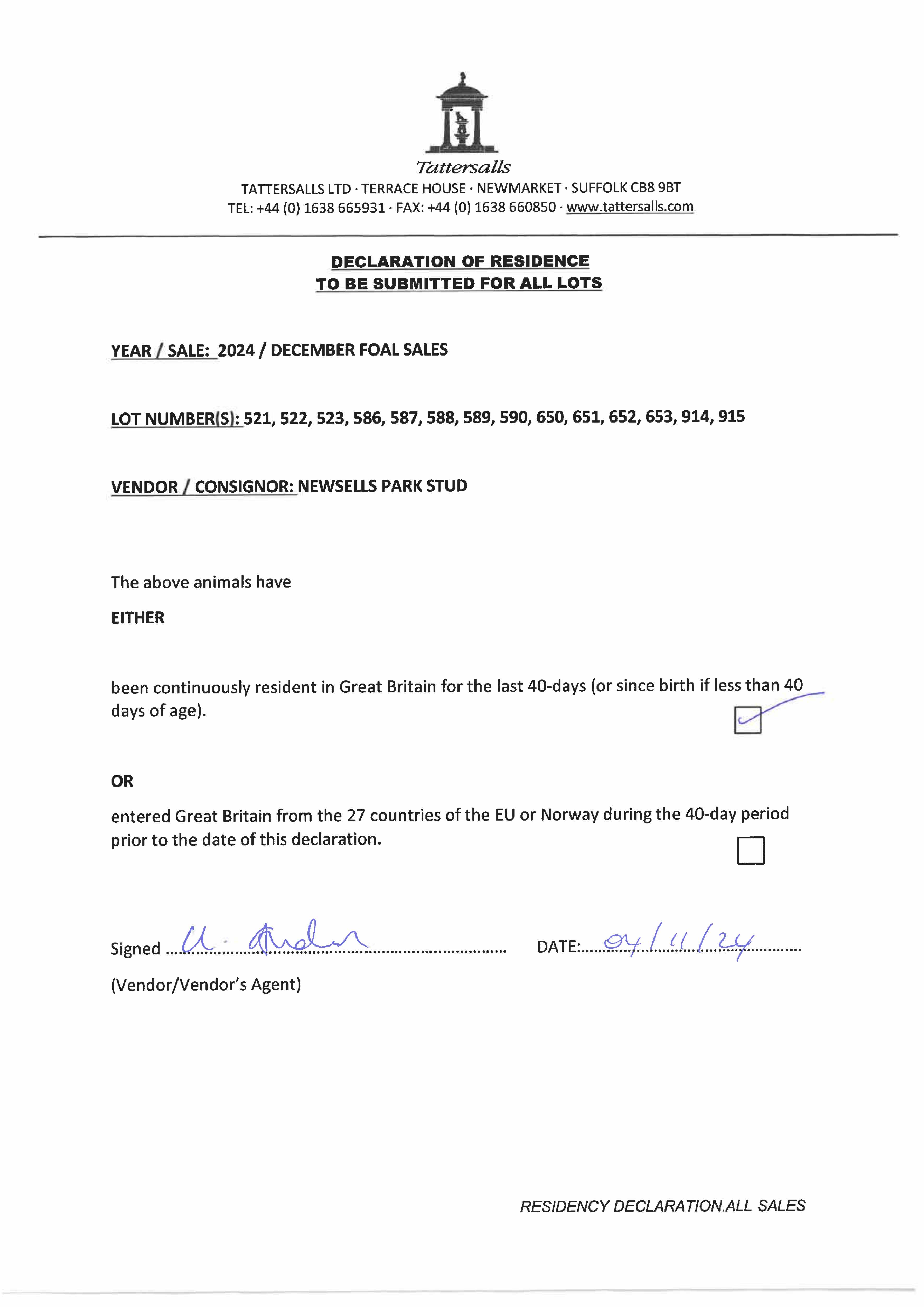 December Foal Sale 2025 lot 640 F. by Palace Pier (GB) 2025, Newsells Park Stud Ltd.=>Evergreen Bloodstock 70,000 gns