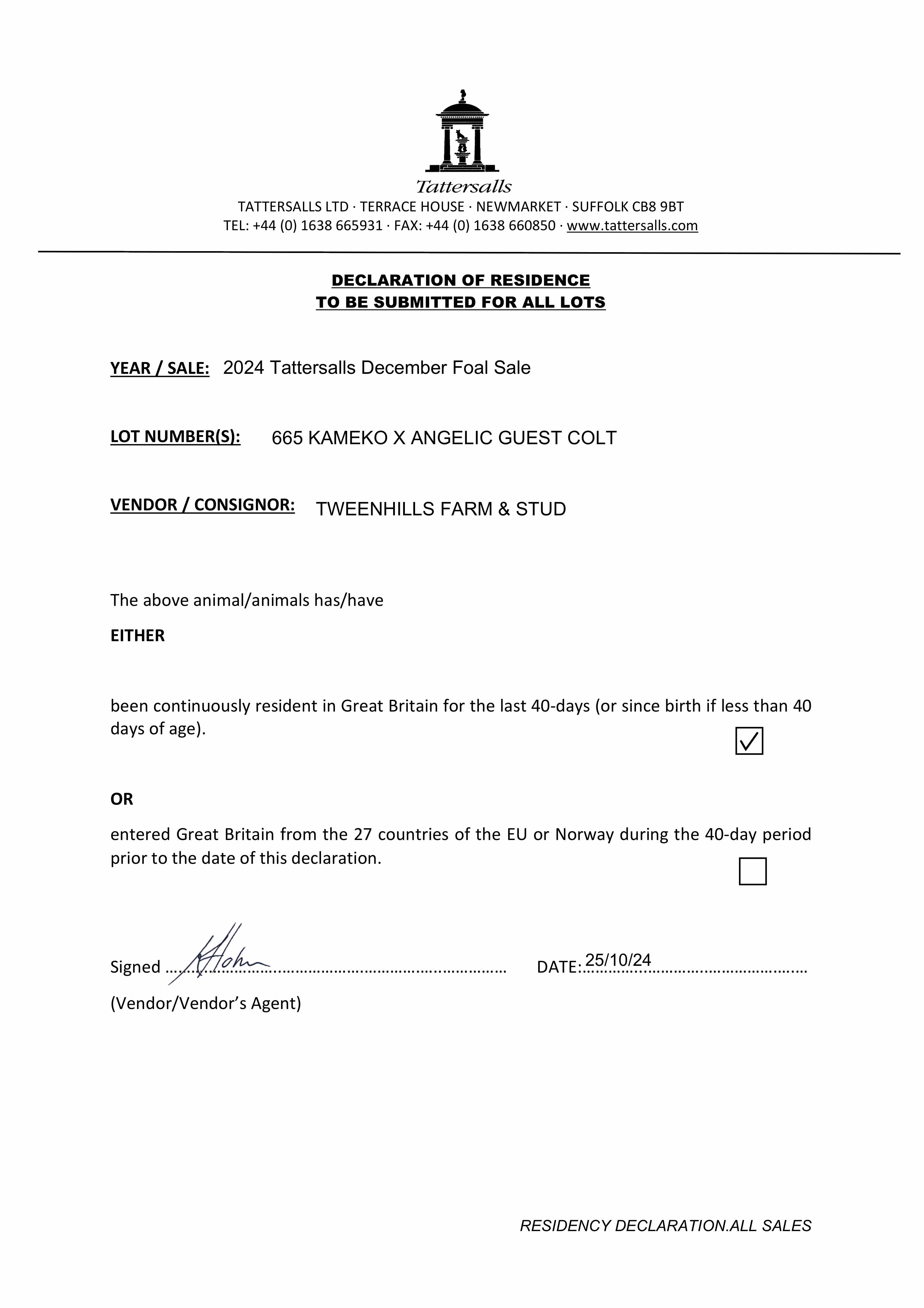 December Foal Sale 2025 lot 643 F. 2025, Tweenhills=>Shaun Henley 28,000 gns
