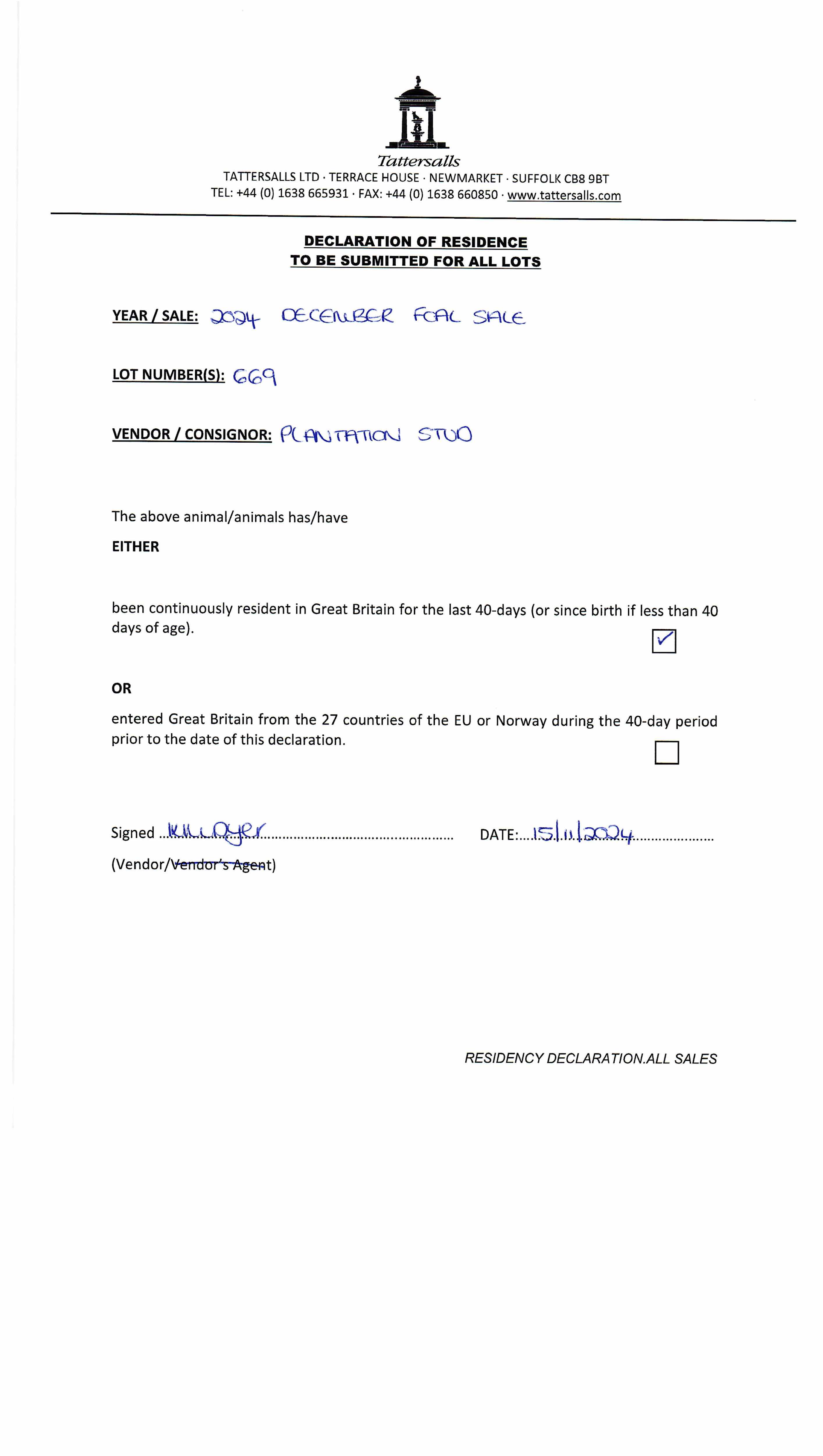 Consignor: Plantation Stud