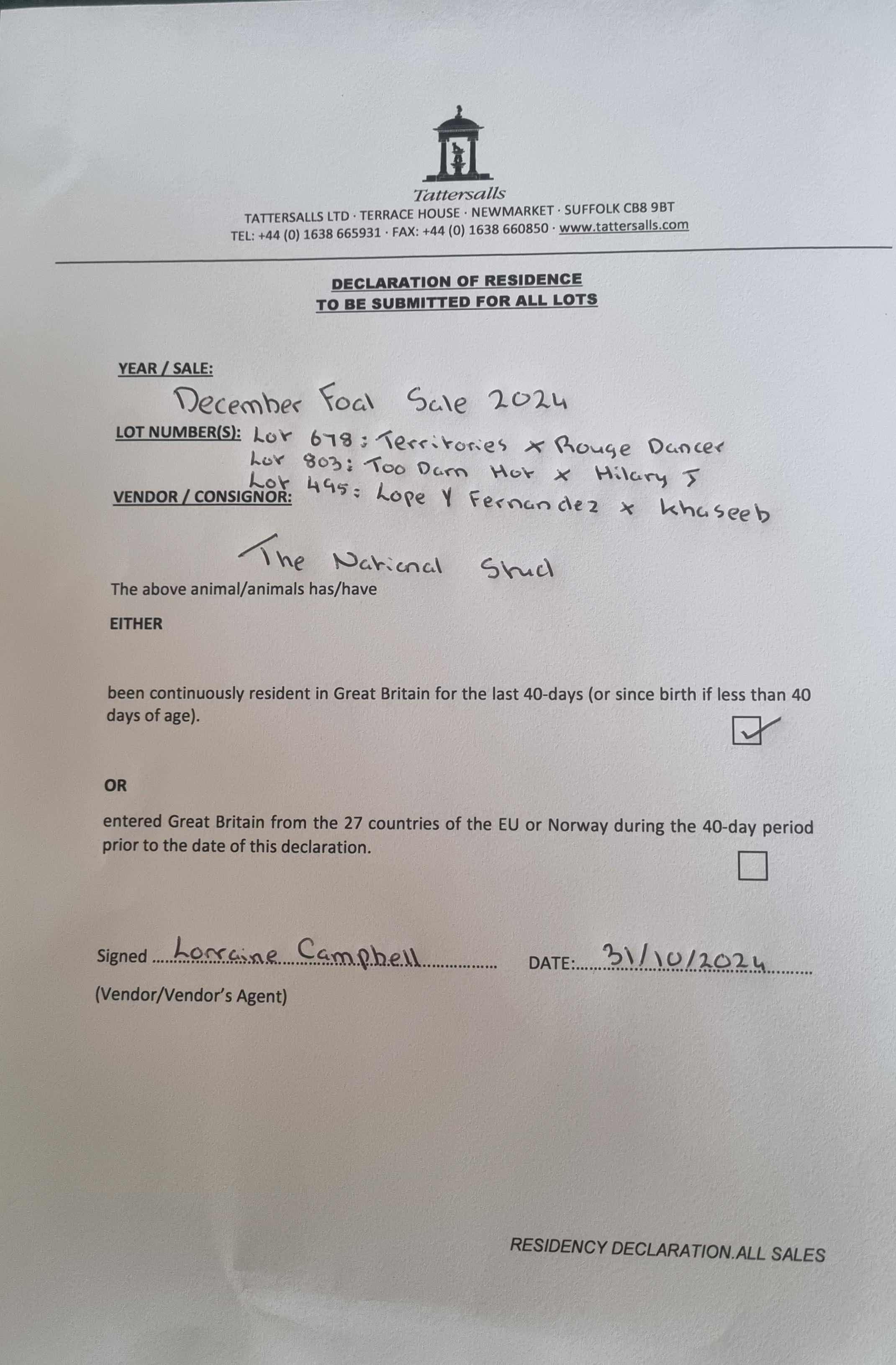 Consignor: The National Stud Ltd.