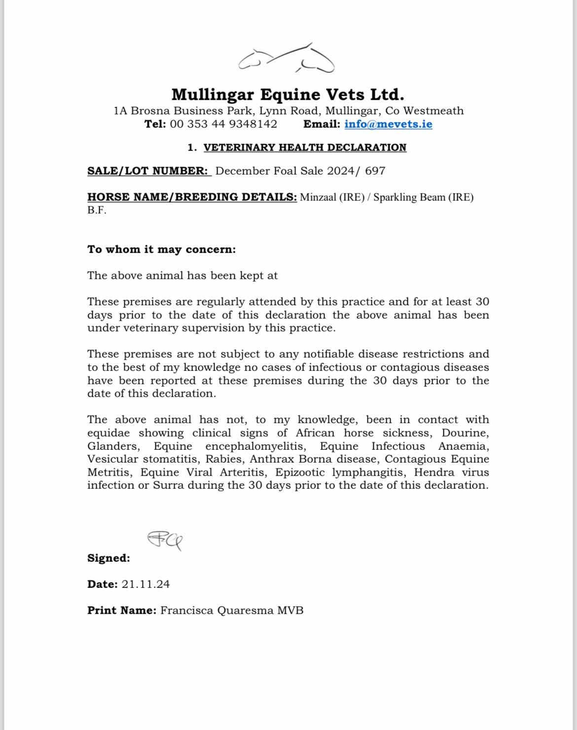 December Mare Sale 2025 lot 1880 Sparkling Spirit (GB) (M. by Invincible Spirit (IRE)), Baroda Stud, Ireland=>ACM Spalding 6,000 gns