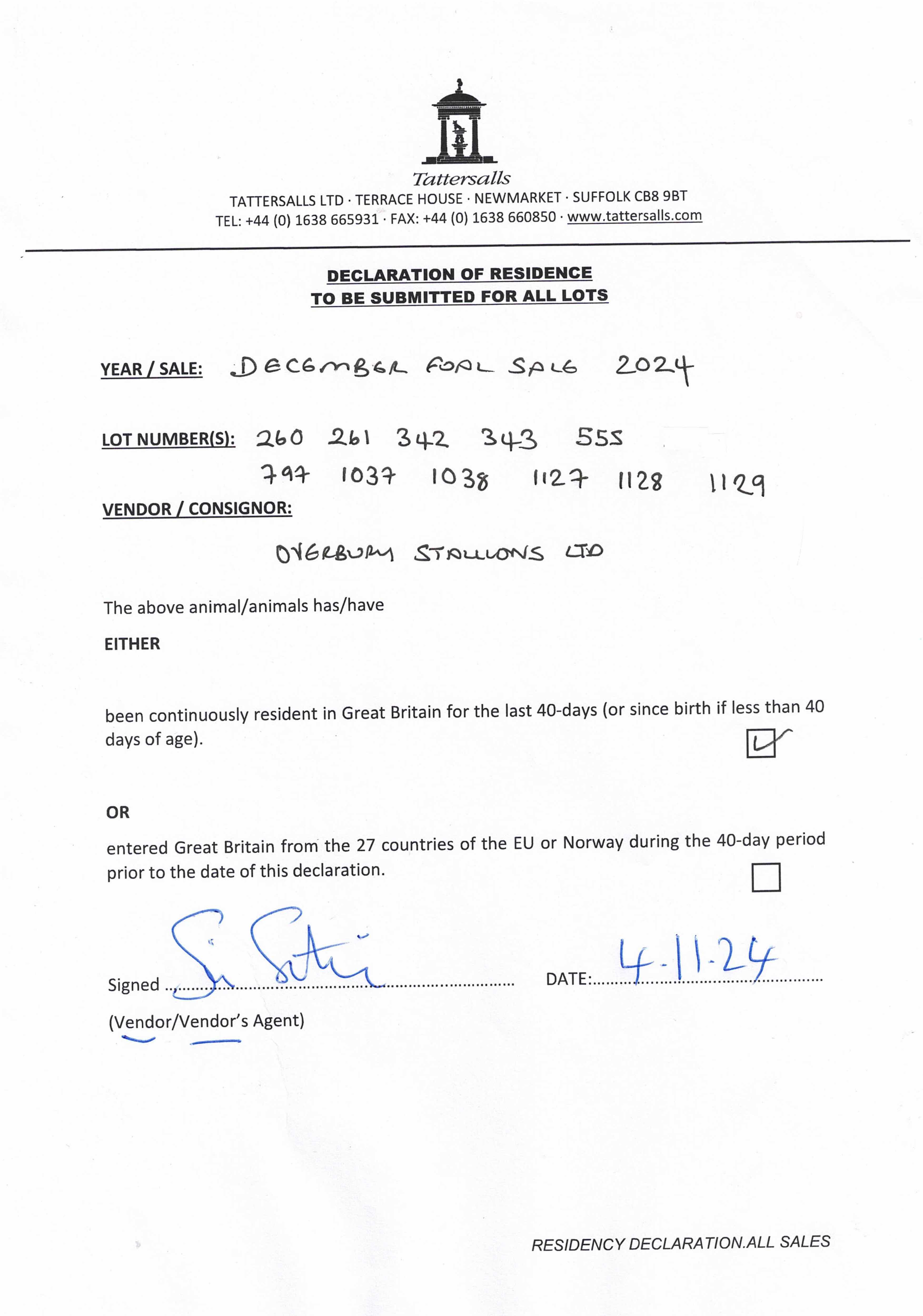 December Foal Sale 2023 lot 647 F. by Blue Point (IRE) 2023, Overbury Stud=>Sumbe 92,000 gns