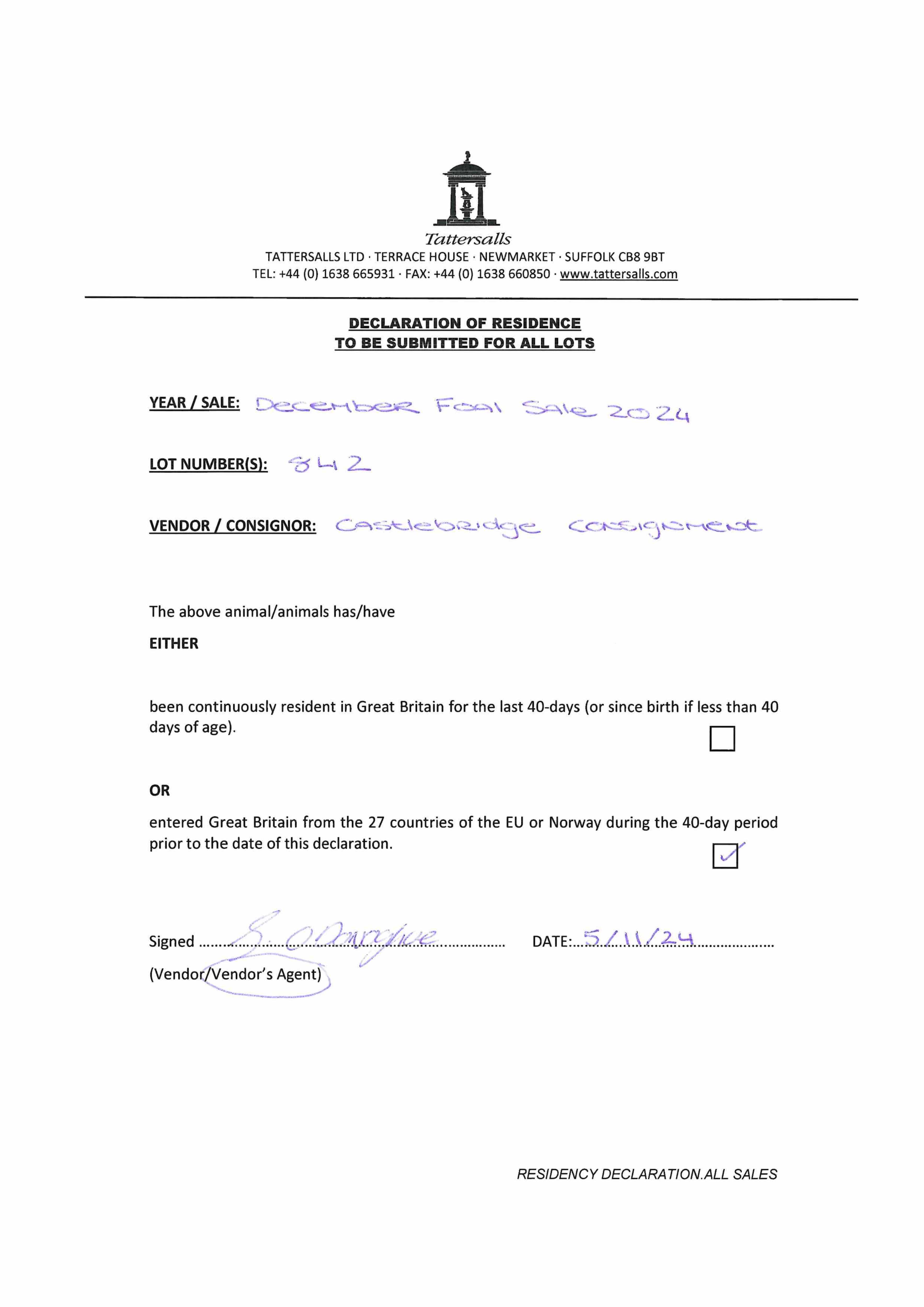 Consignor: The Castlebridge Consignment