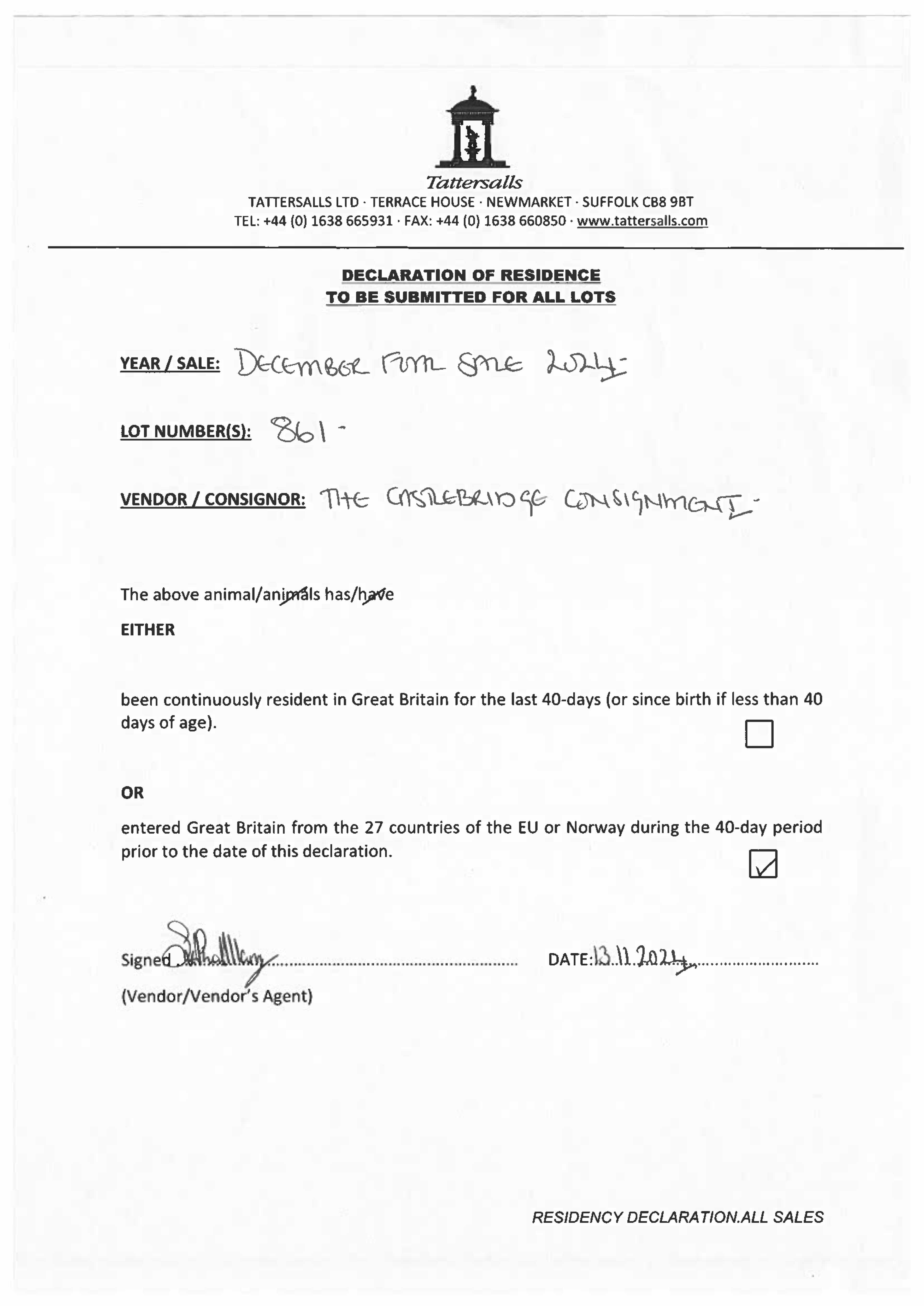 Consignor: The Castlebridge Consignment