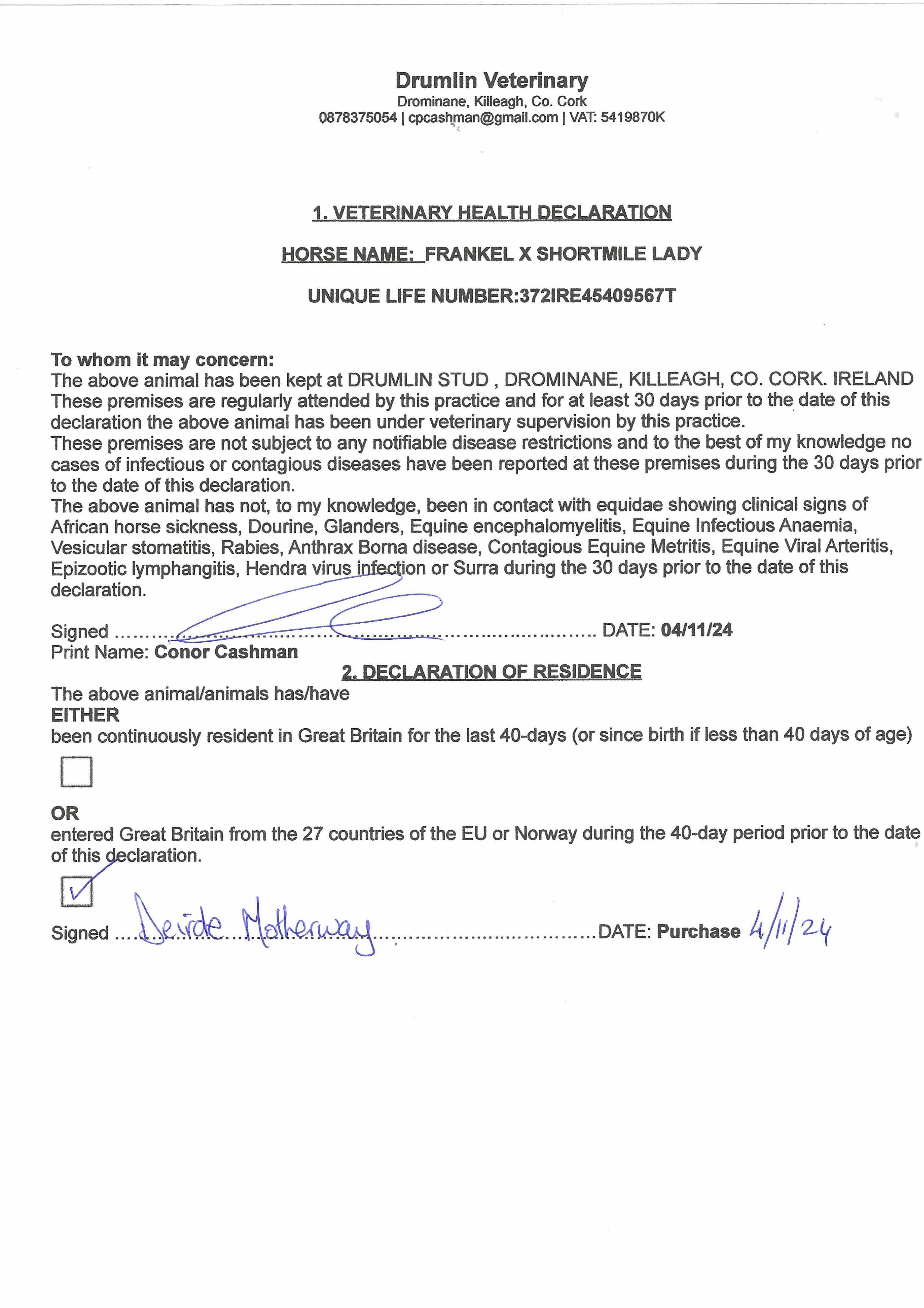 Consignor: Drumlin and Yellowford, Ireland