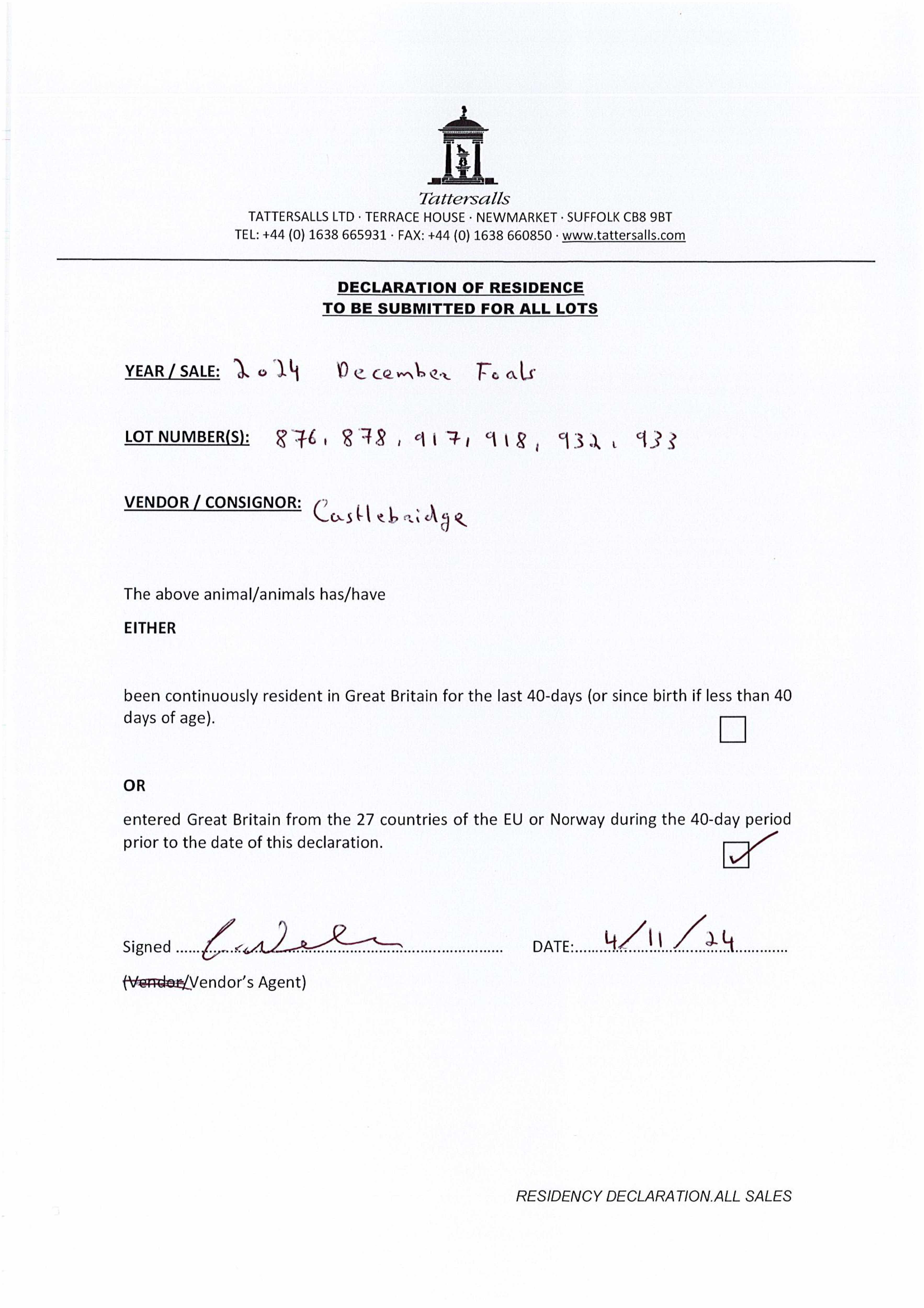 Consignor: The Castlebridge Consignment