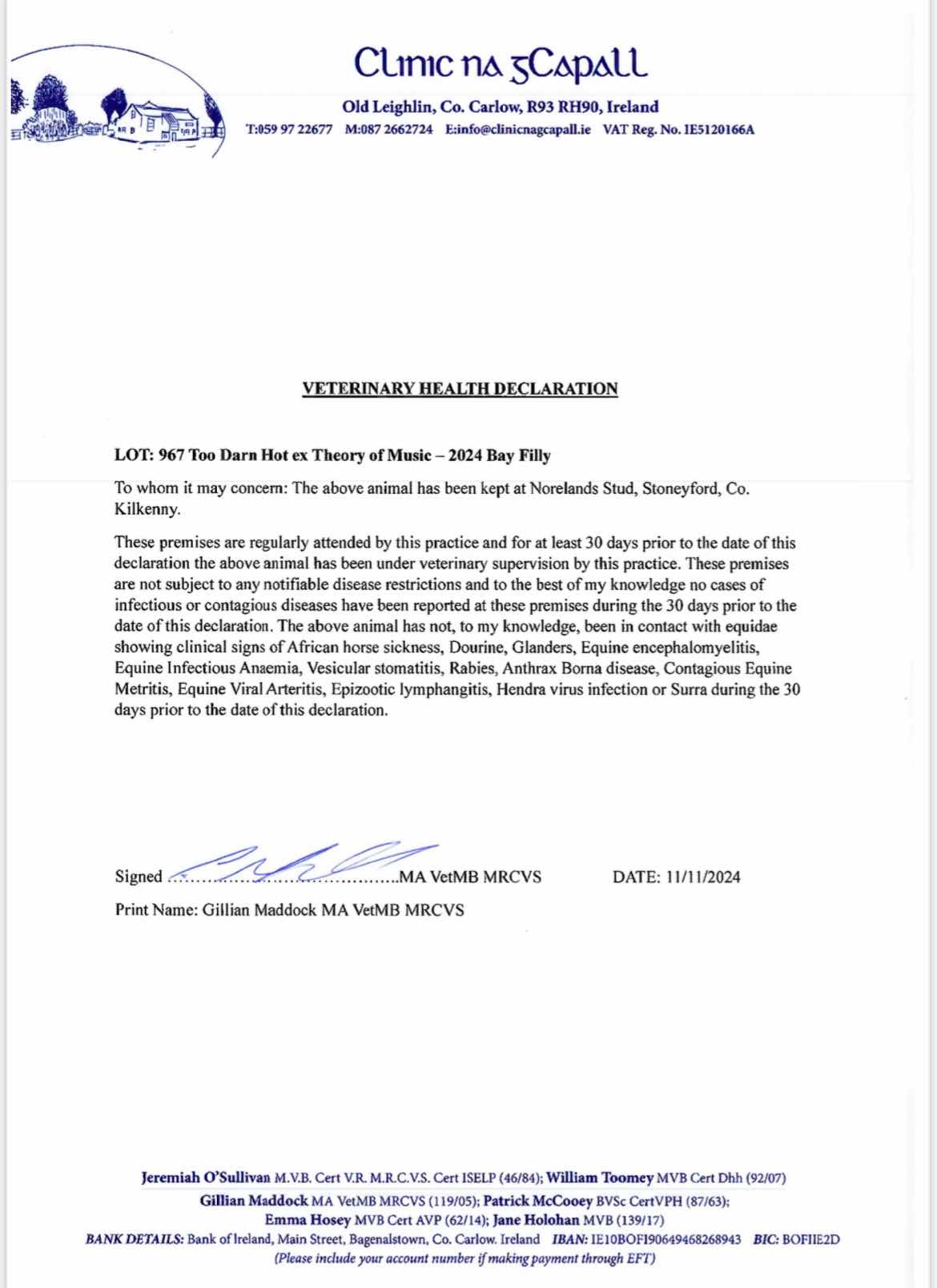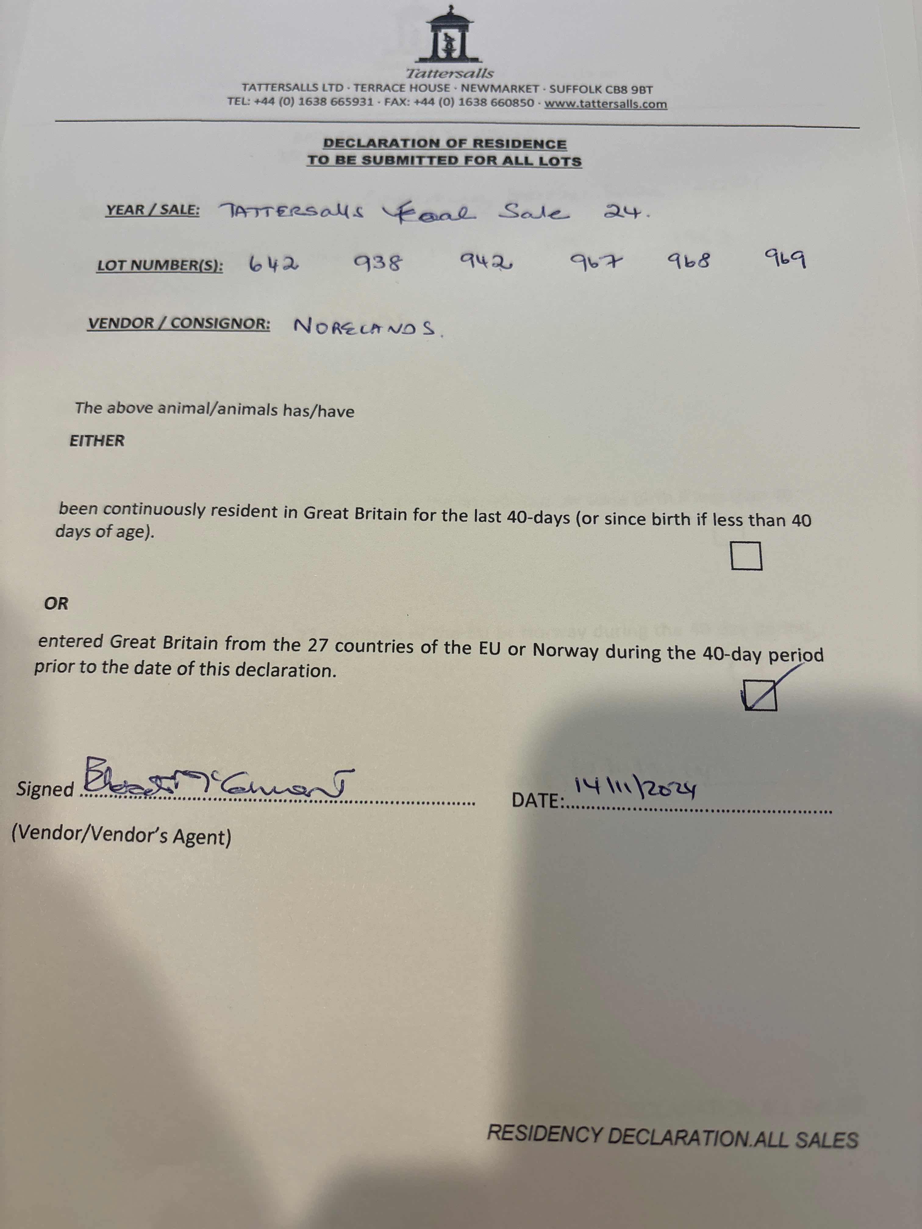 Consignor: Norelands, Ireland
