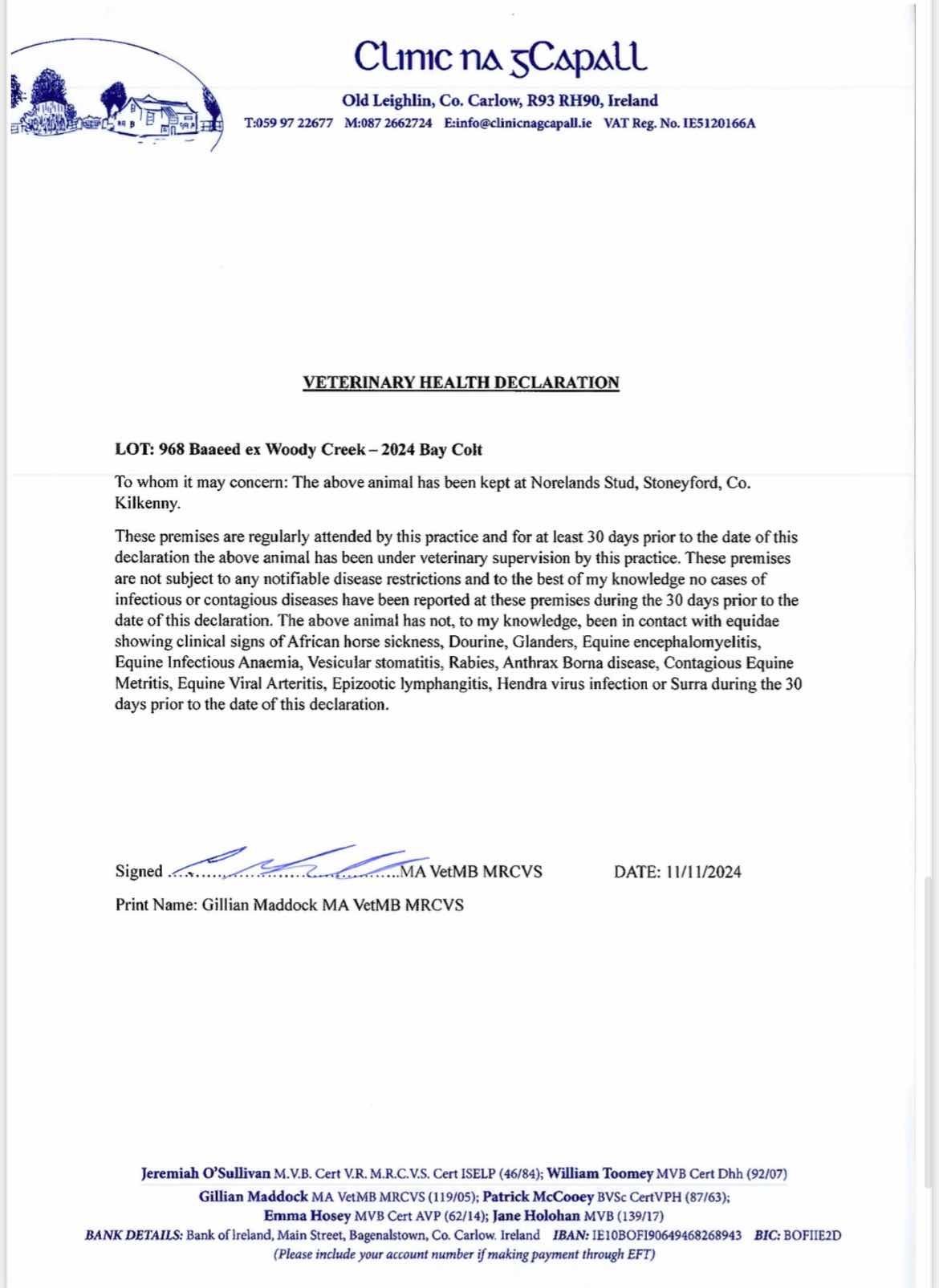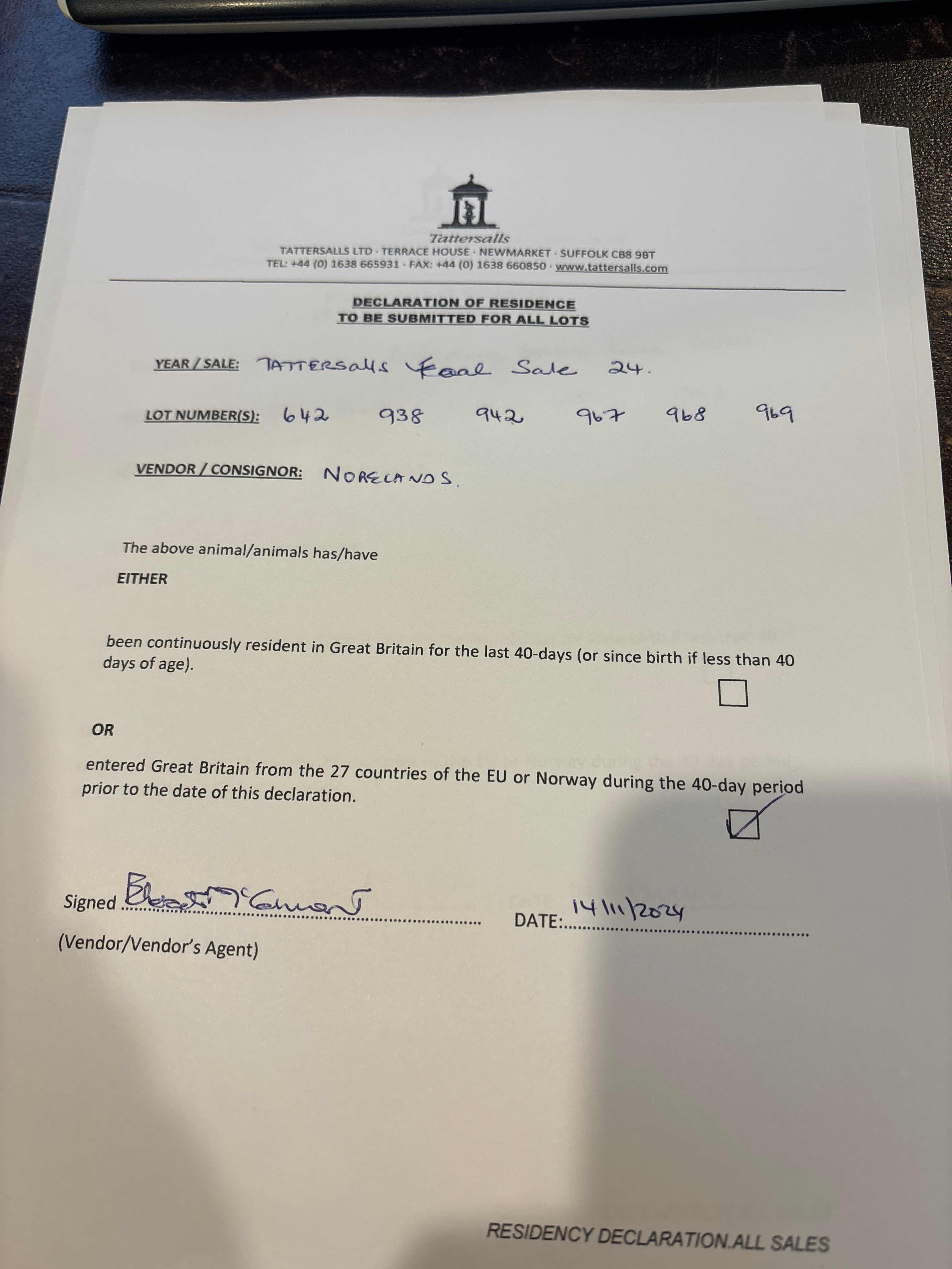 Consignor: Norelands, Ireland